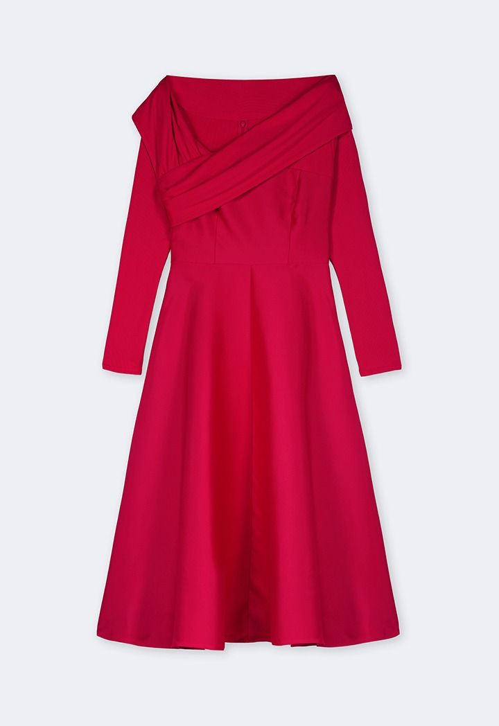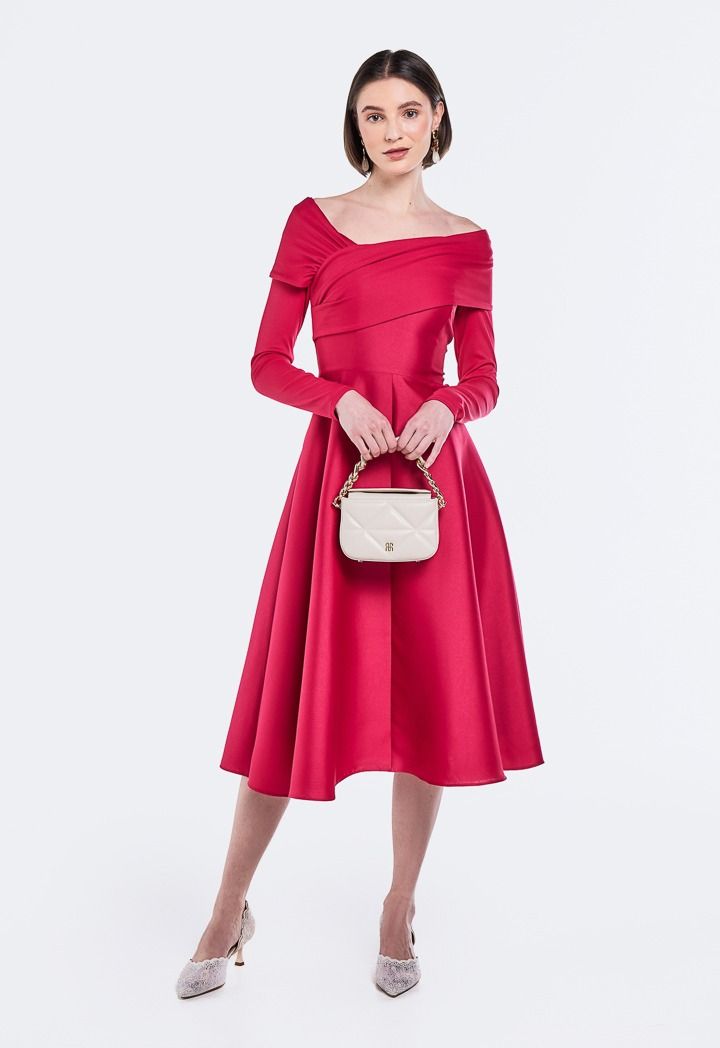 Embrace exquisite glamour with this drop-shoulder dress. It exudes timeless elegance, ensuring you make a striking impression at any upscale event.
