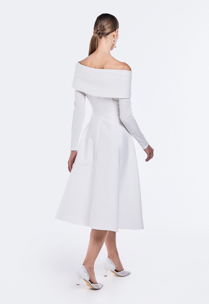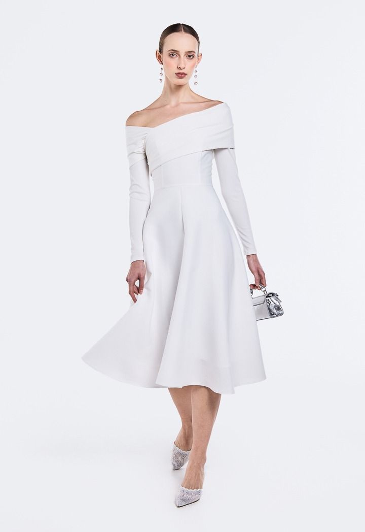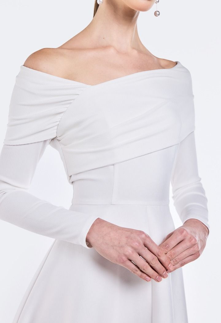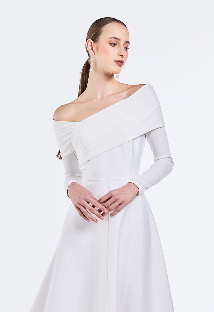 Embrace exquisite glamour with this drop-shoulder dress. It exudes timeless elegance, ensuring you make a striking impression at any upscale event.
