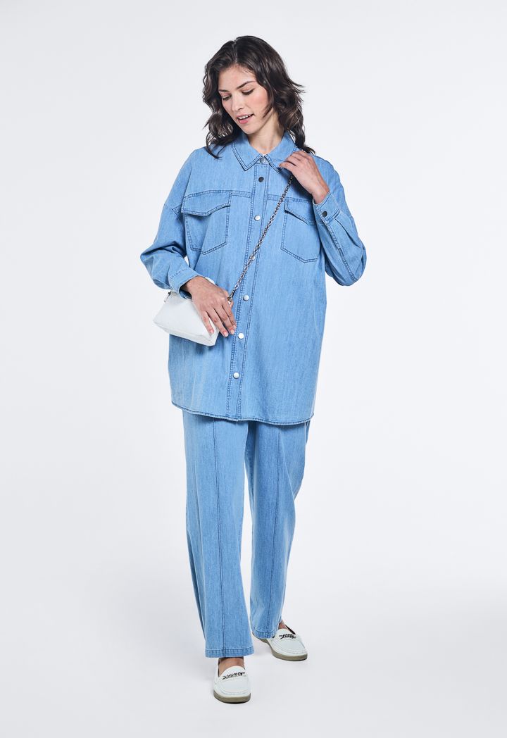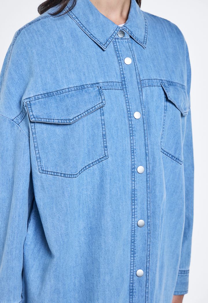 Drop Shoulder Oversized Denim Shirt |