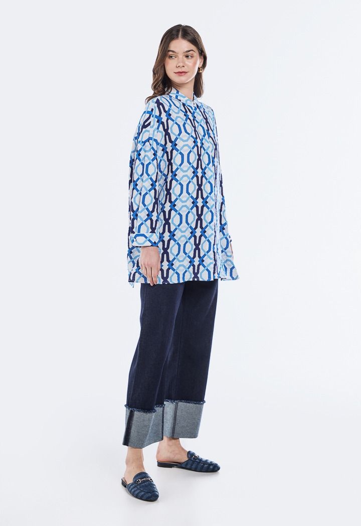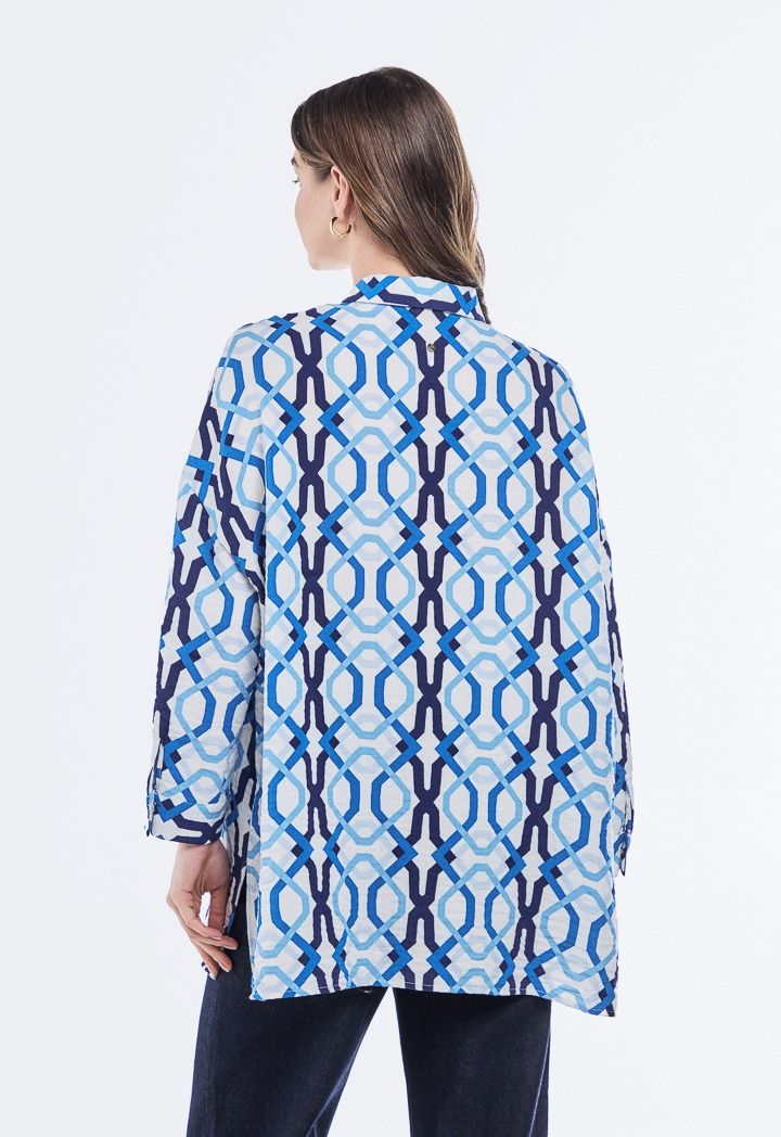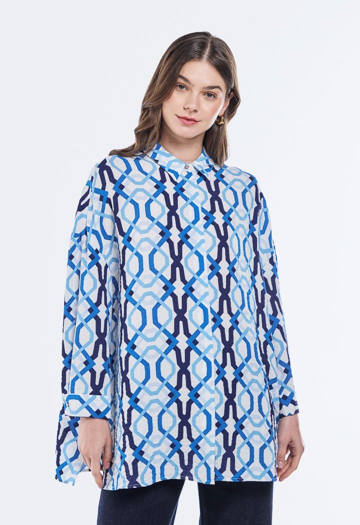 A printed crinkled shirt with dropped shoulders for a bold modern look that combines comfort and style in every detail.