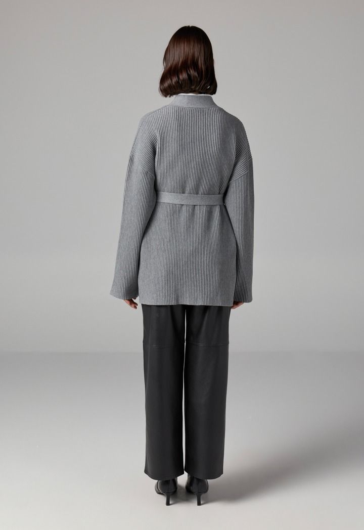 Design: Solid, Knitted, Ribbed, Drop Shoulder, Belt