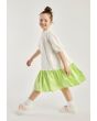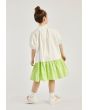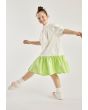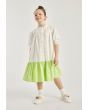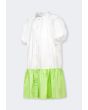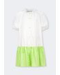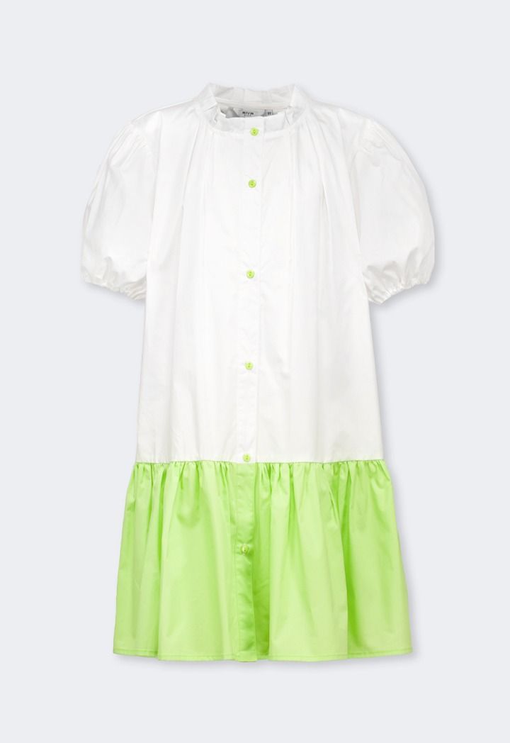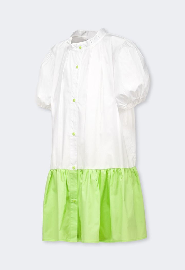 A drop waist dress featuring a beautiful blend of two colors and an elegant Mandarin collar perfect for a stylish look.