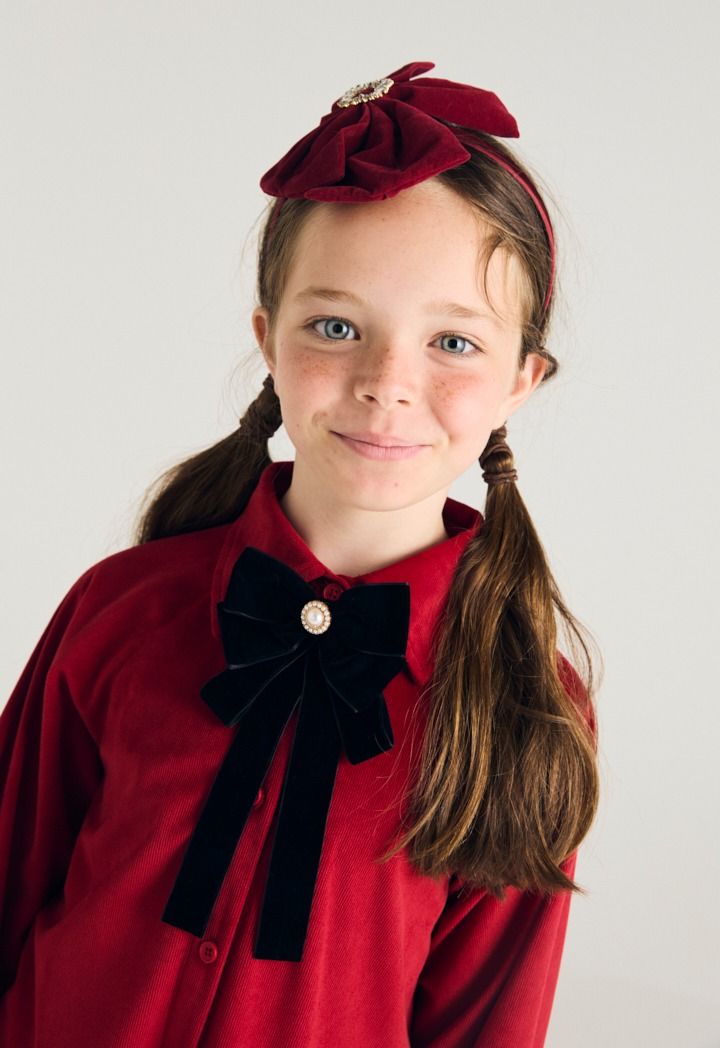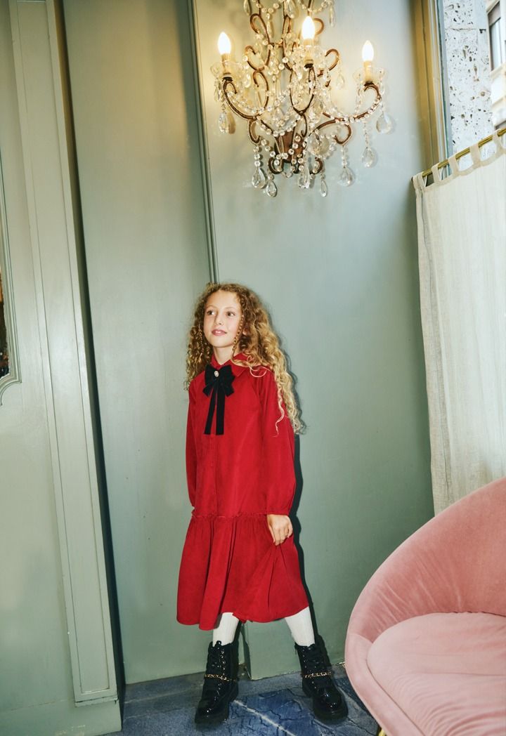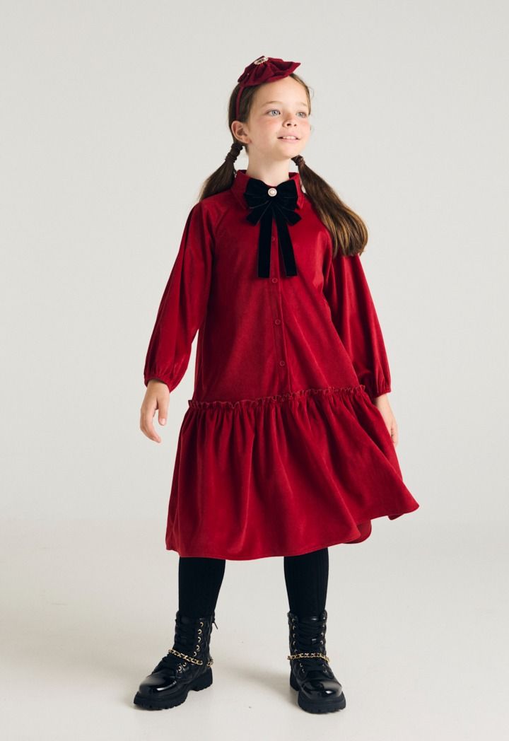 Design: Velvet, Detachable Bow, Drop Waist, Elastic Cuffs