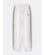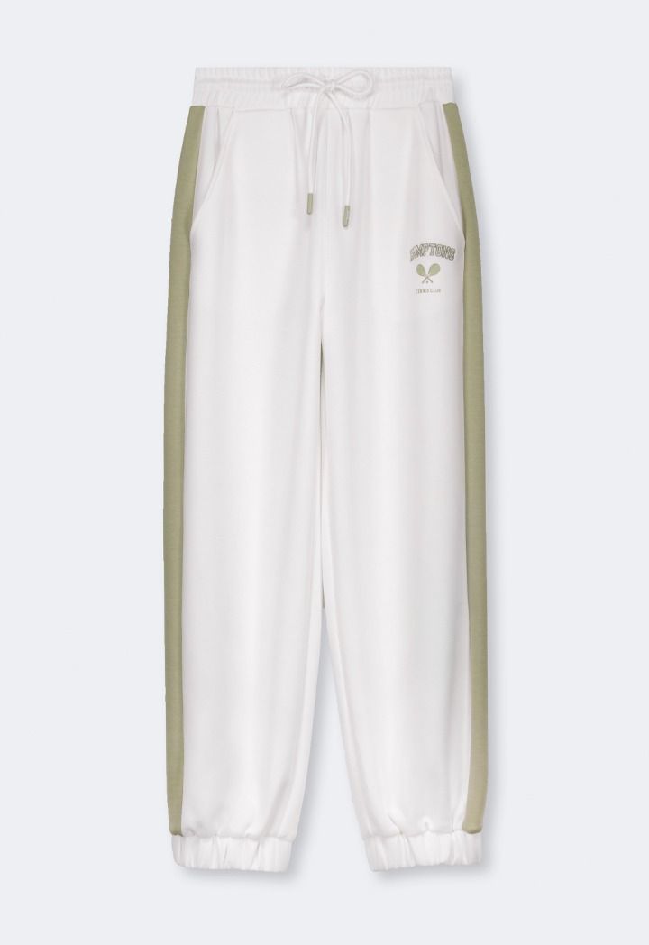 A comfortable pair of sweatpants that features a contrast design and gathered hems, perfect for a morning run.