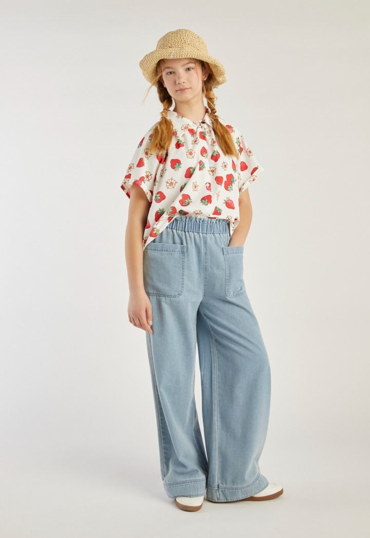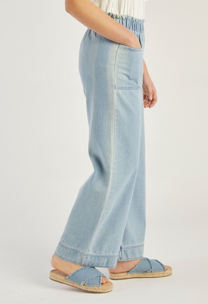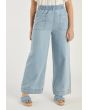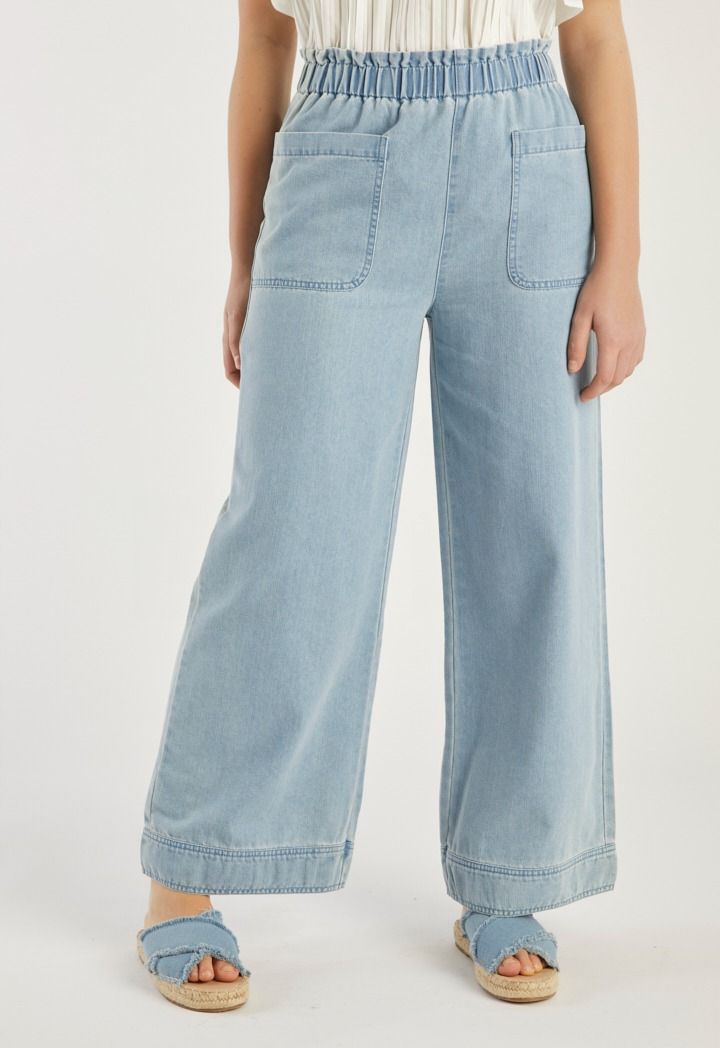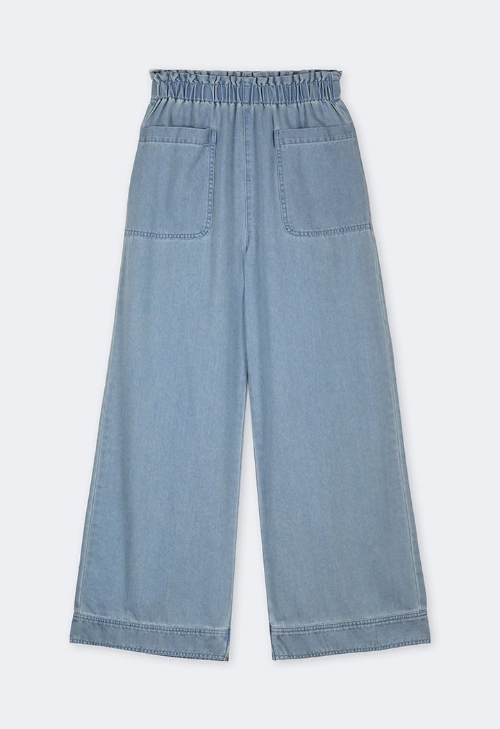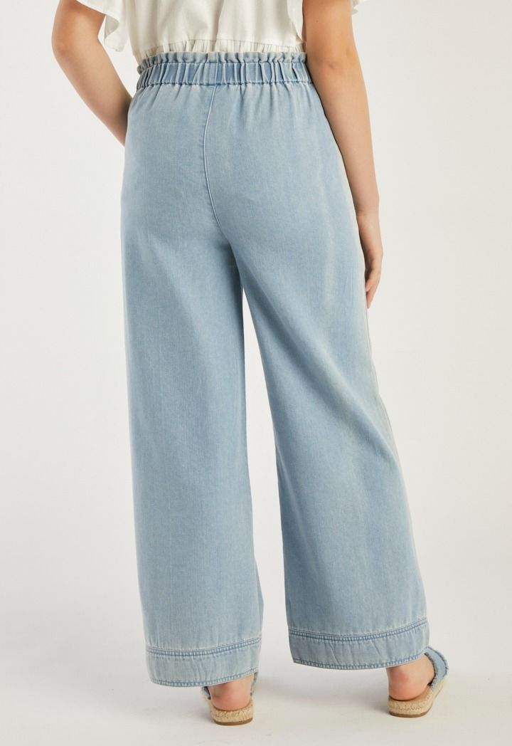 Experience comfort and style with the denim pants featuring a flexible waistband and wide-leg fit, the perfect choice for a trendy and effortless look all day long.