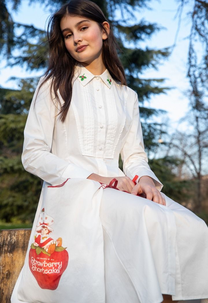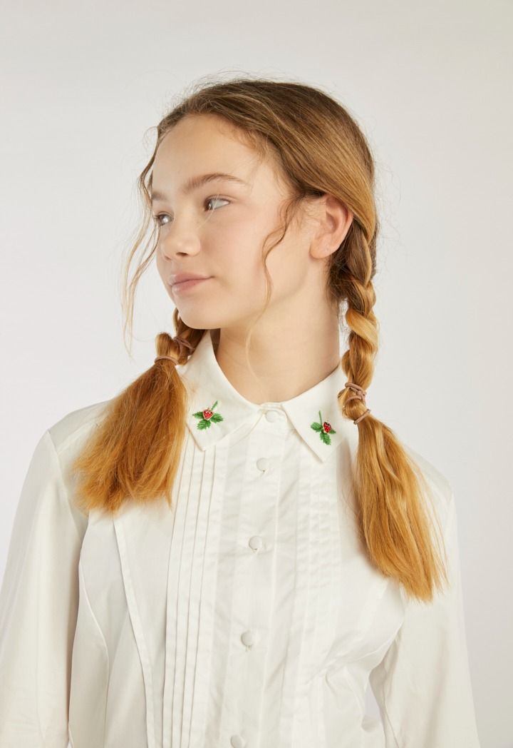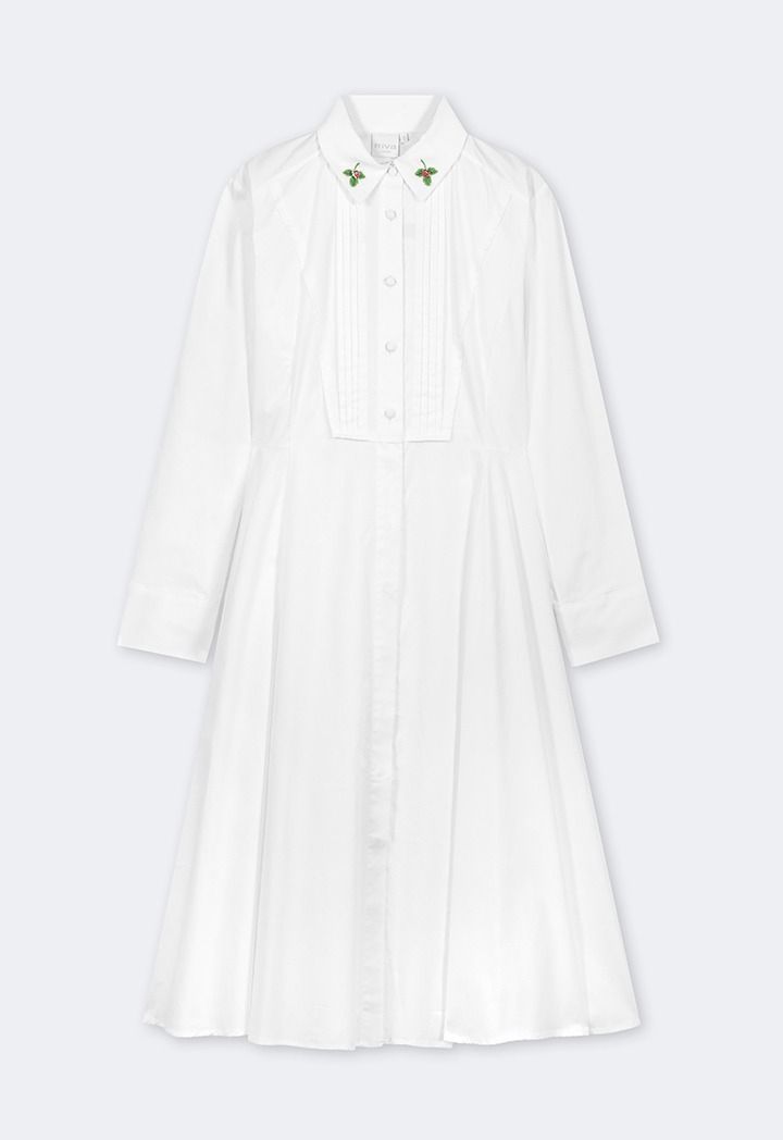 Design : Solid, Pin Pleated, Strawberry Brooch On Collar