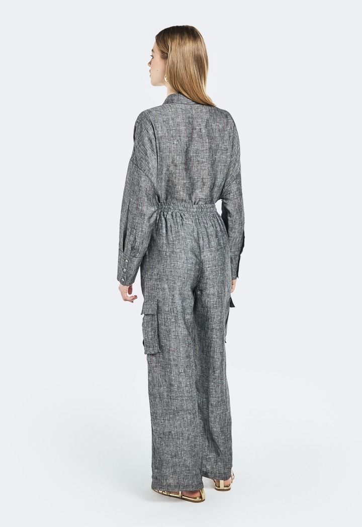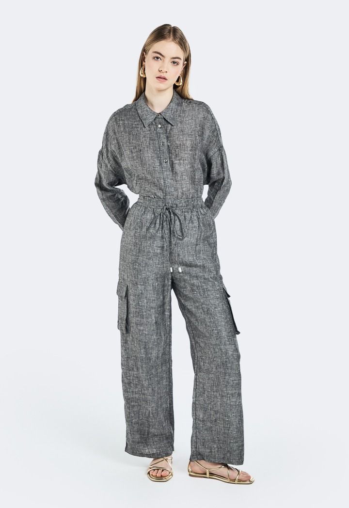 Design: Solid, Wide Leg, High Waist, Side Pockets, Side Flap Pockets