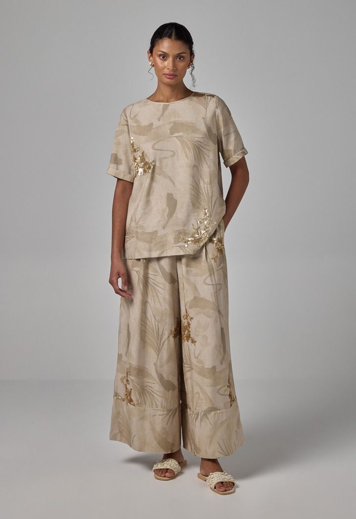 Combine comfort and style with this Sequins Palazzo Trousers with wide legs.