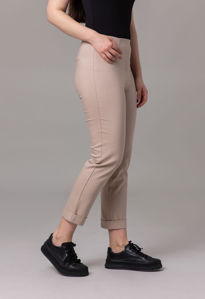 Elasticated Waist High Rise Folded Hem Solid Trousers |