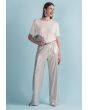 Unique style for both style and comfort. Featuring an elasticated waistband and side pockets, these trousers offer a relaxed yet chic look for lounging or casual wear.