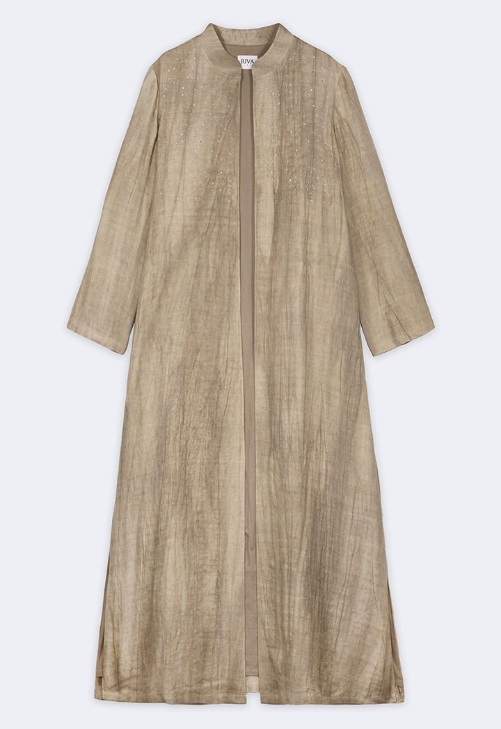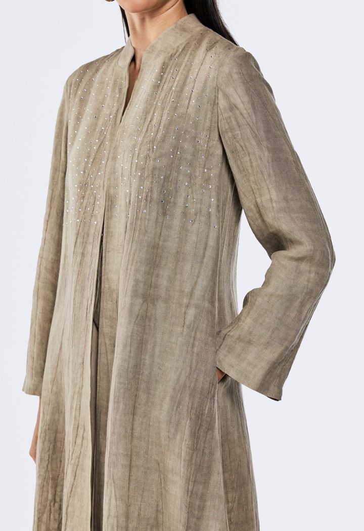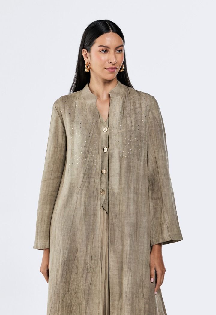 Design : Crystal Embellished, Crinkled Linen, Attached Lining, Side Slits