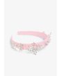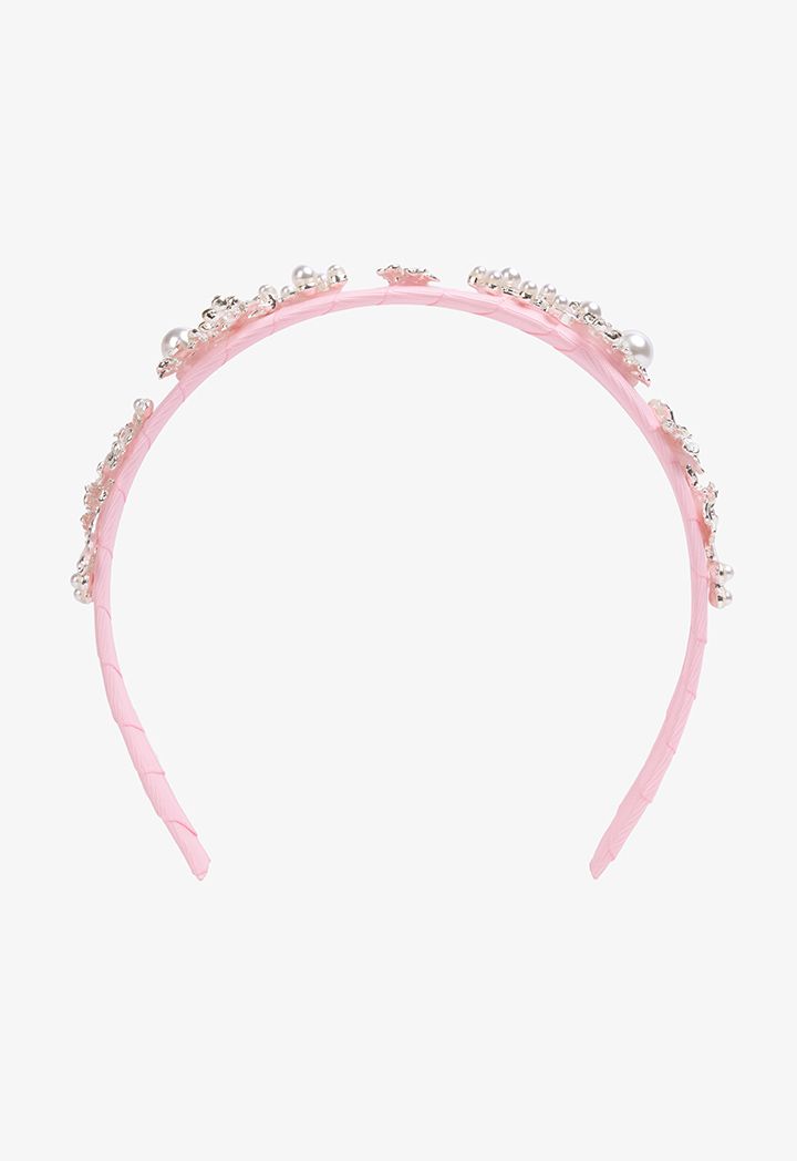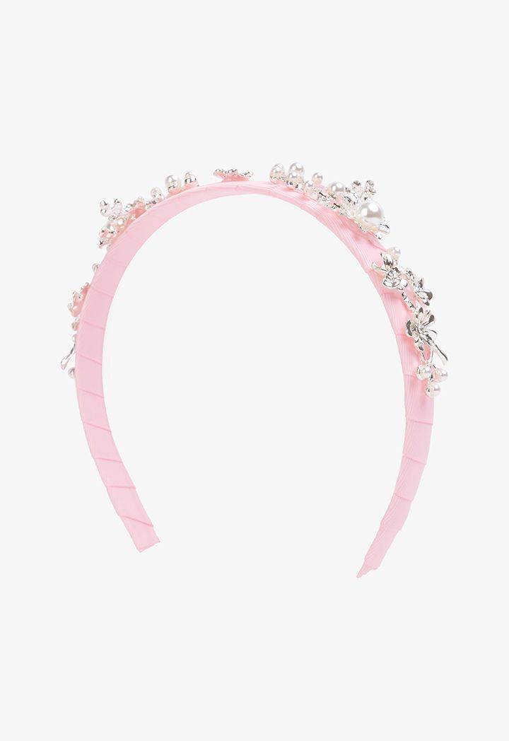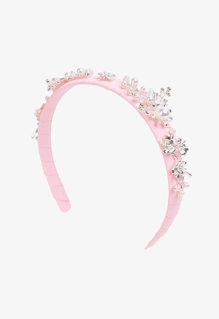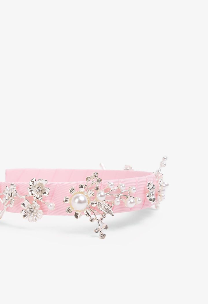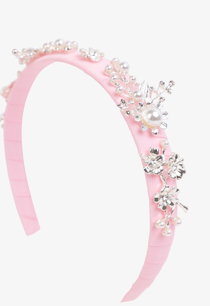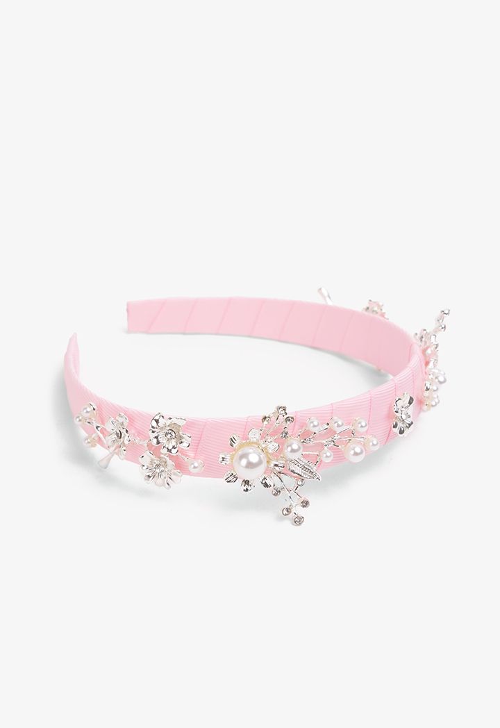 Style your hair with this metallic headband that features a sparkling faux pearls embellished design.