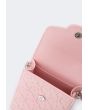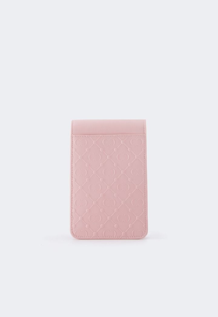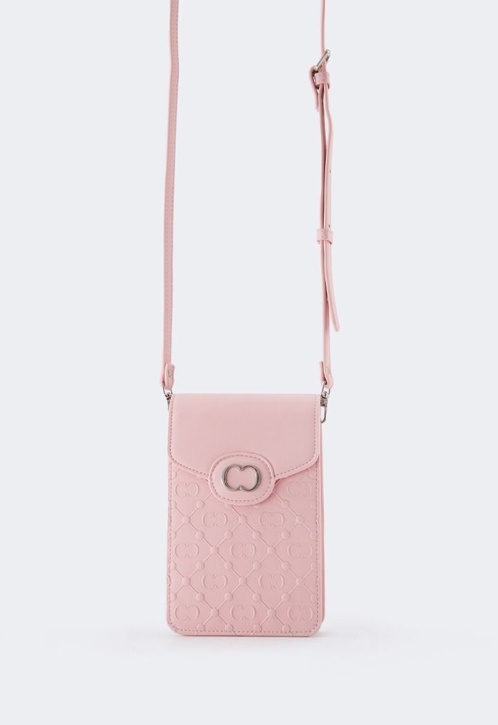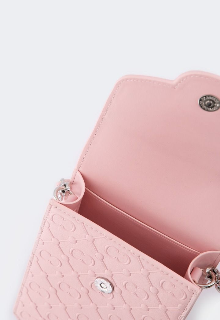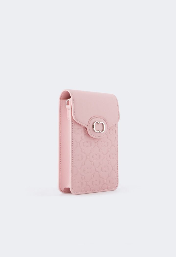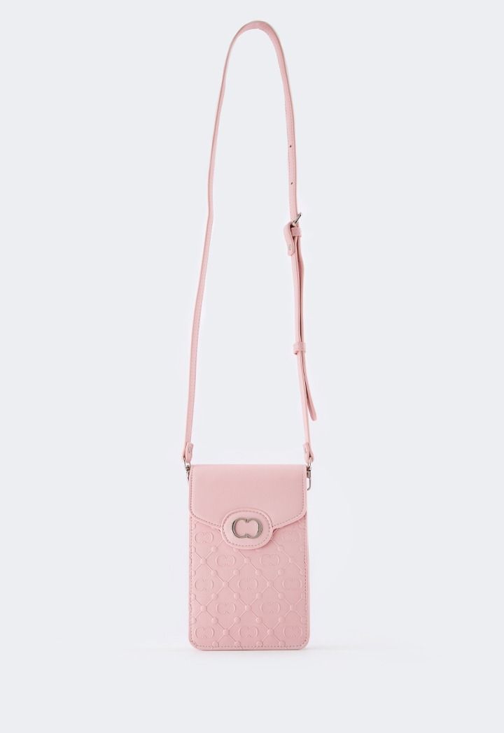 A classic crossbody bag with a modern twist, featuring a solid outline and an embossed monogram.