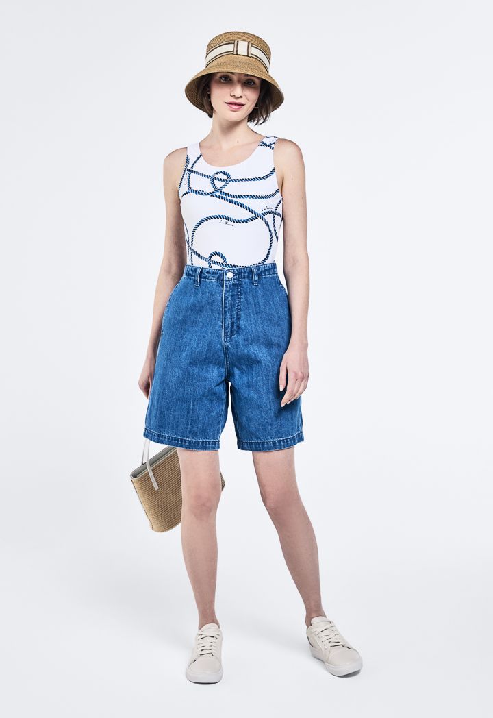Design: Solid, High Waist, Multi Pockets, Embossed Monogram, Denim