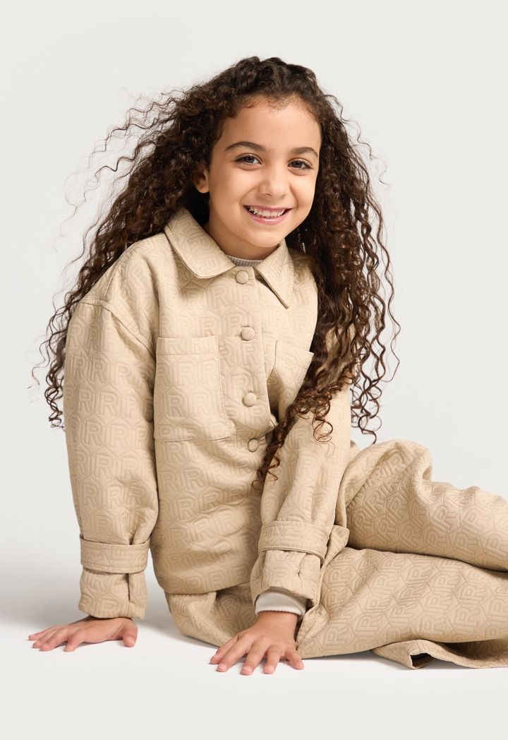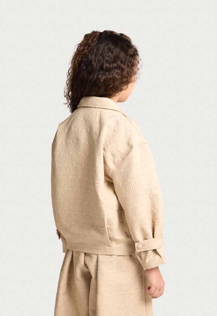 An essential jacket that features an embossed monogram shirt design and front buttons for closure.