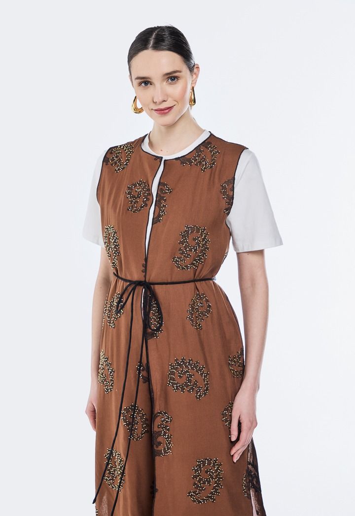 Material: 57% Viscose, 43% Linen. Embroidery: 100% Polyester