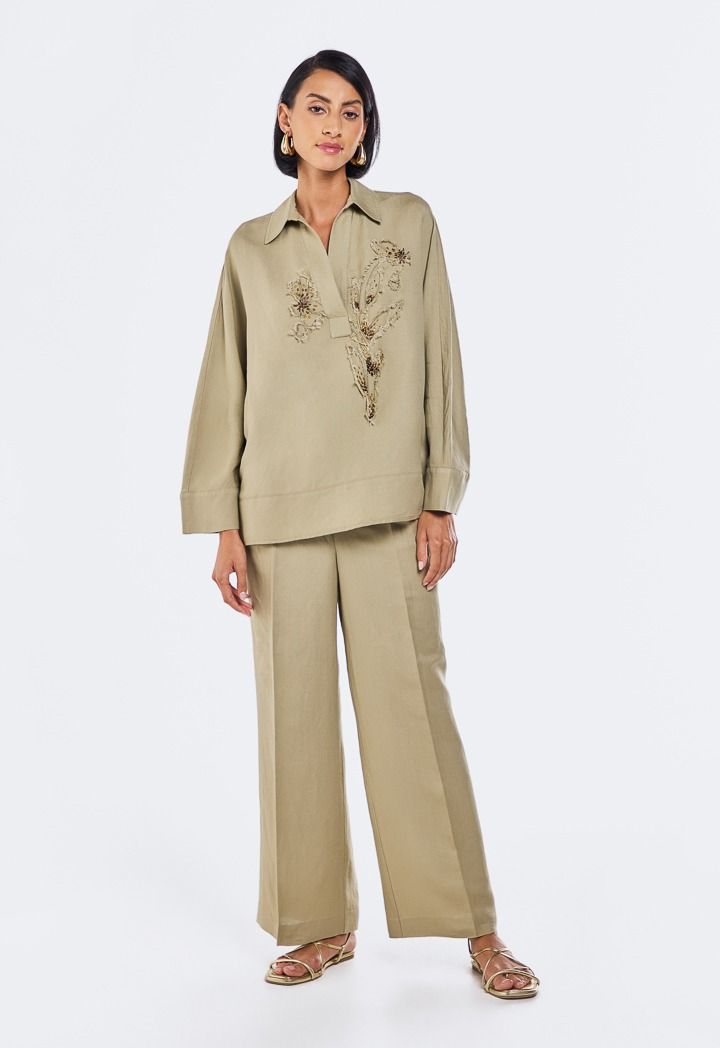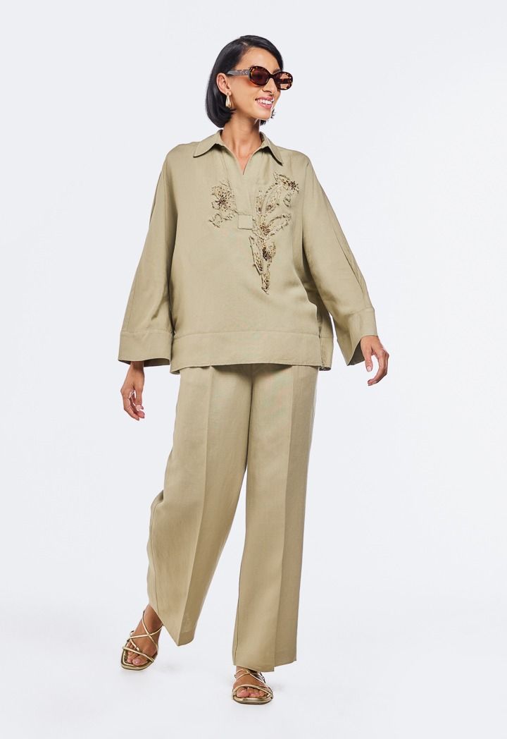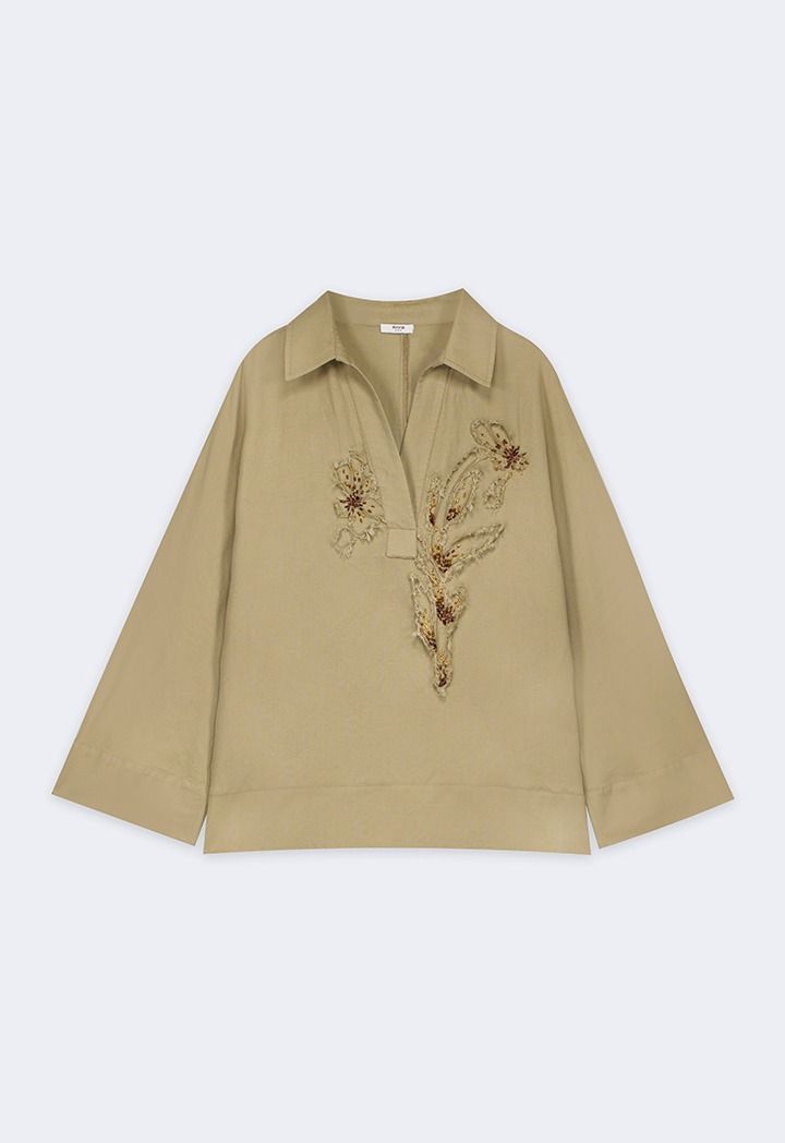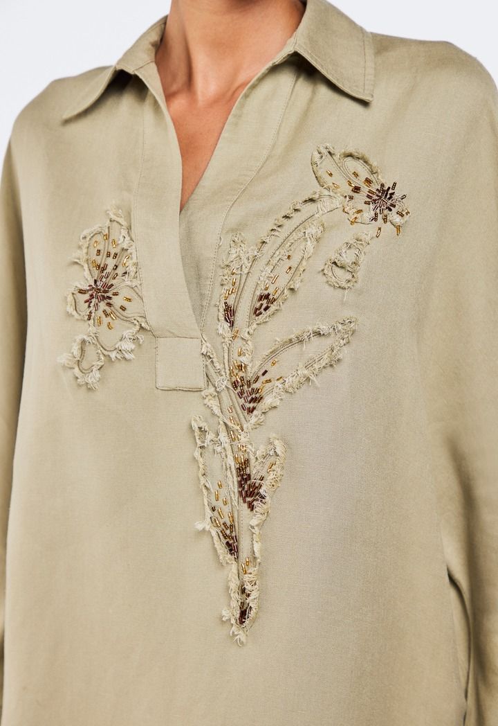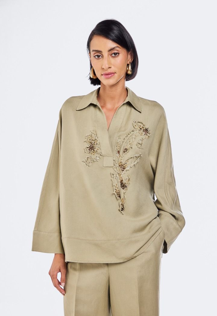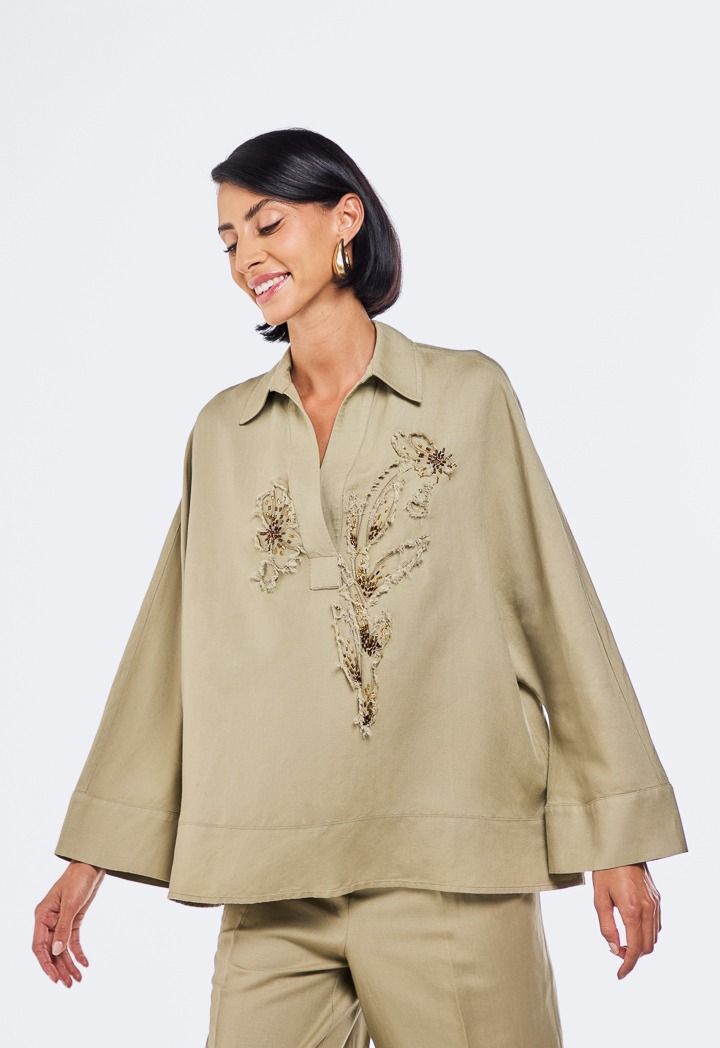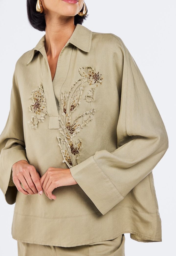 Embroidered Beaded Linen Blouse |