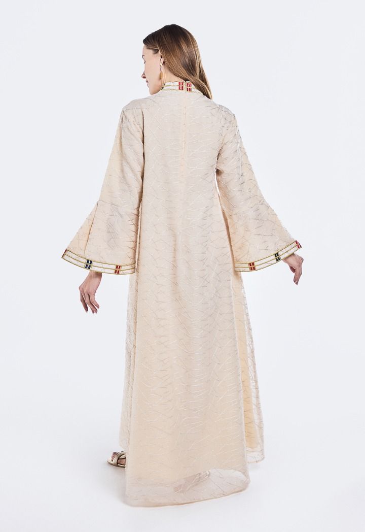Stand out with simple elegance in an abaya adorned with pearls and beads, a luxurious design that adds a touch of opulence and completes your look with exquisite details.