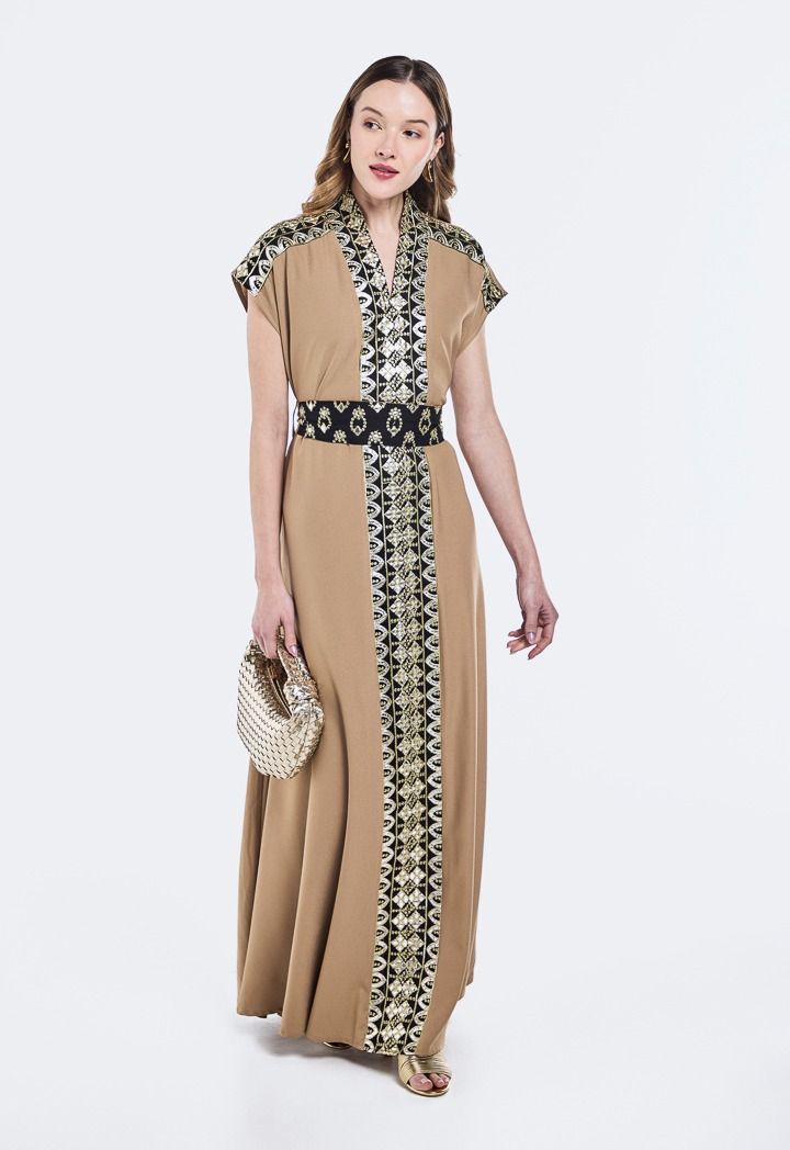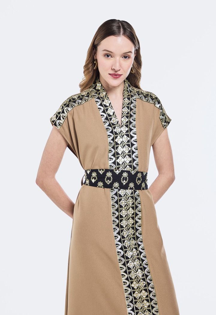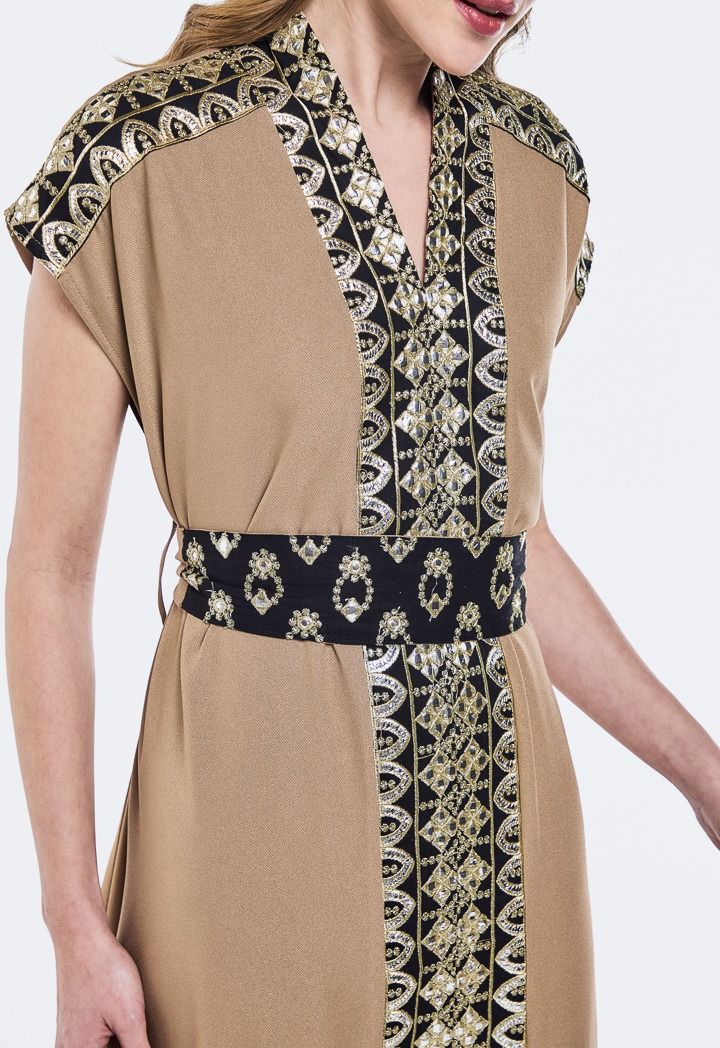 Design: Embroidered, Belted, Attached Lining, Mirror, Tassels