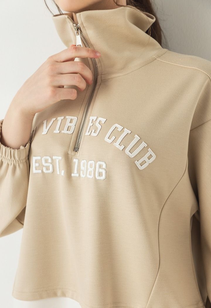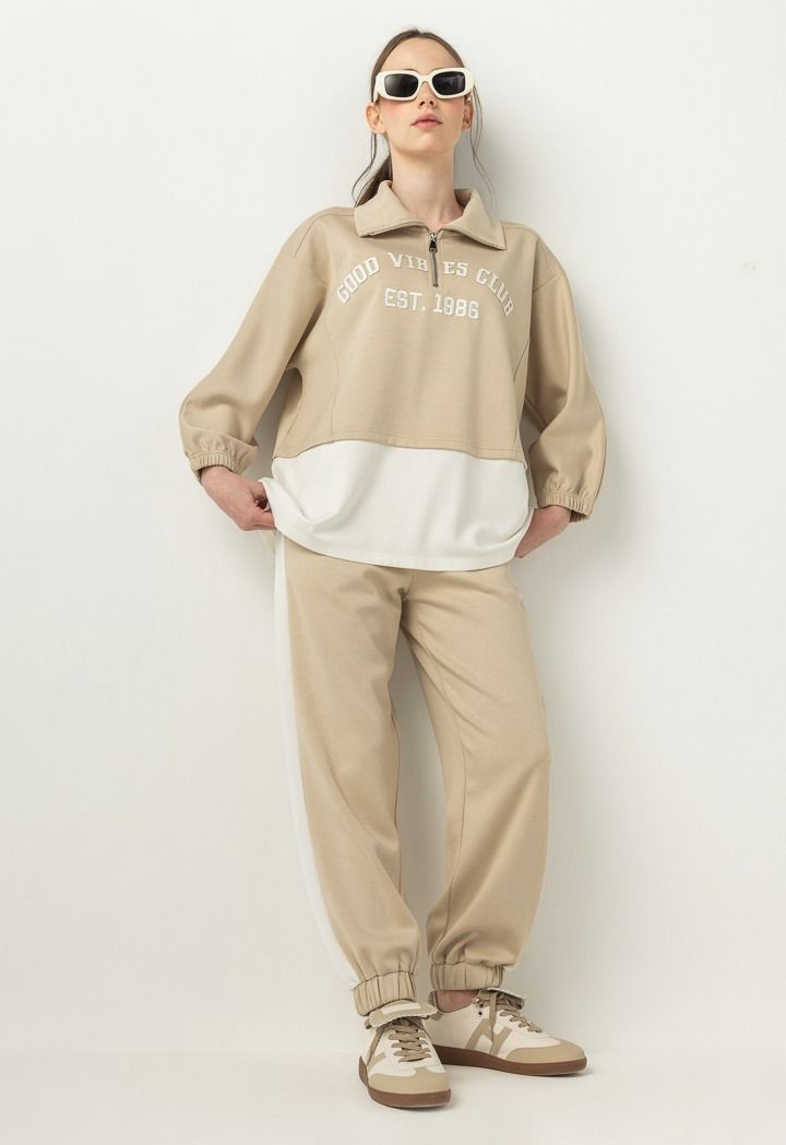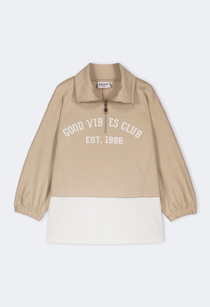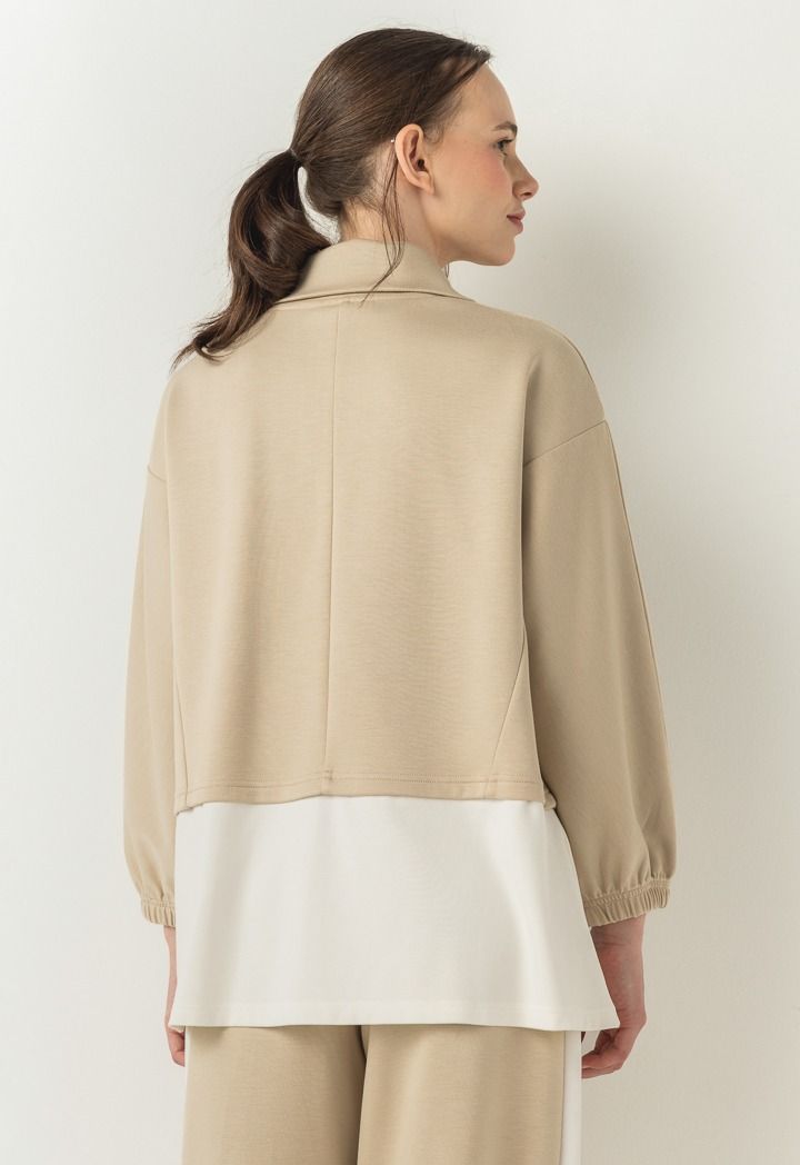 A contrast sweatshirt that features a front zipper and long sleeves.