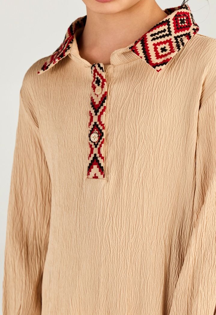 Design : Contrast, Embroidered, Flared Hem, Crinkled, Fringed