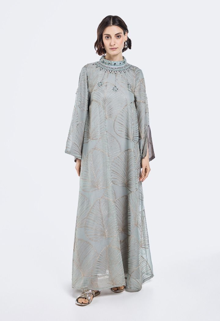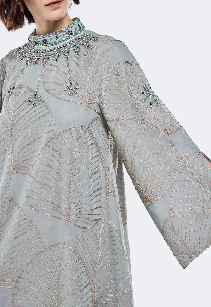 Embroidered Crystal Embellished Dress |