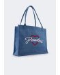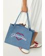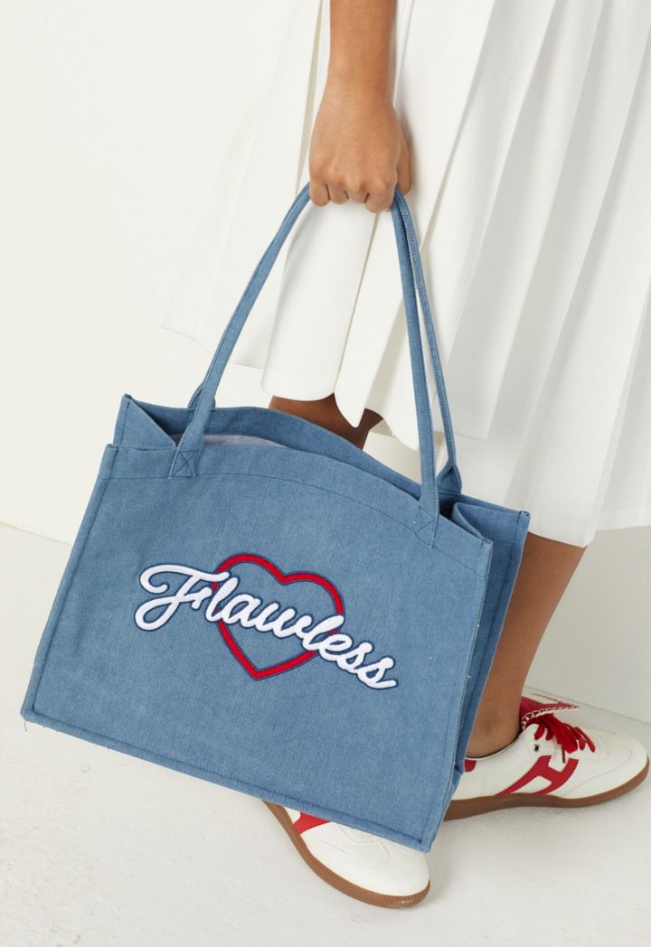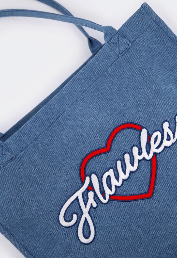 A special tote bag that is distinguished with its iconic embroidered denim design.