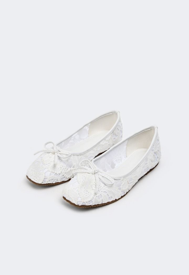 Multiply your daughters collection of shoes with this pair of embroidered lace flat ballerinas.
