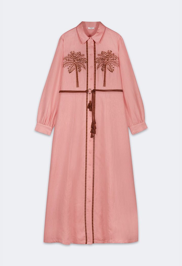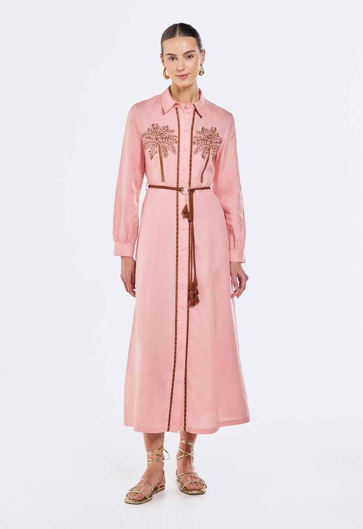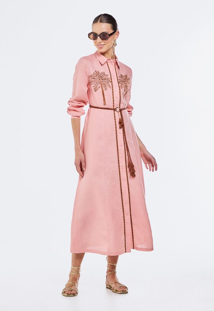 This Shirt Midi Dress offers a contemporary take on a wardrobe essential. The embroidery details create a refined balance of sophistication and ease. Wear it with sleek flats and delicate jewelry for an effortless day-to-evening transition.