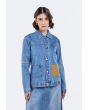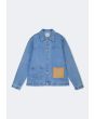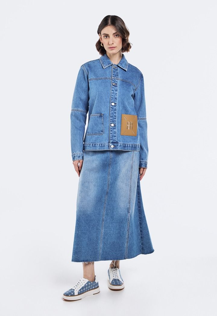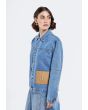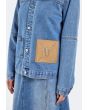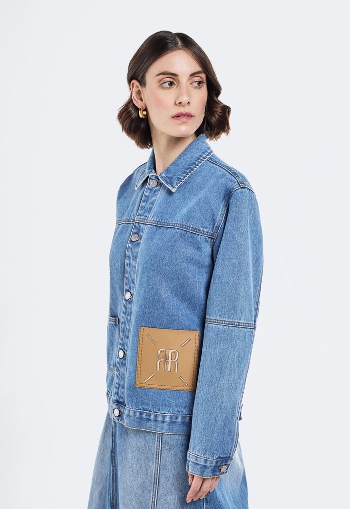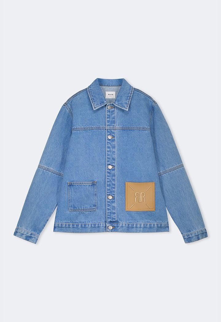 Design: Solid, Faux Leather Patch Pocket, Embroidered Monogram, Denim