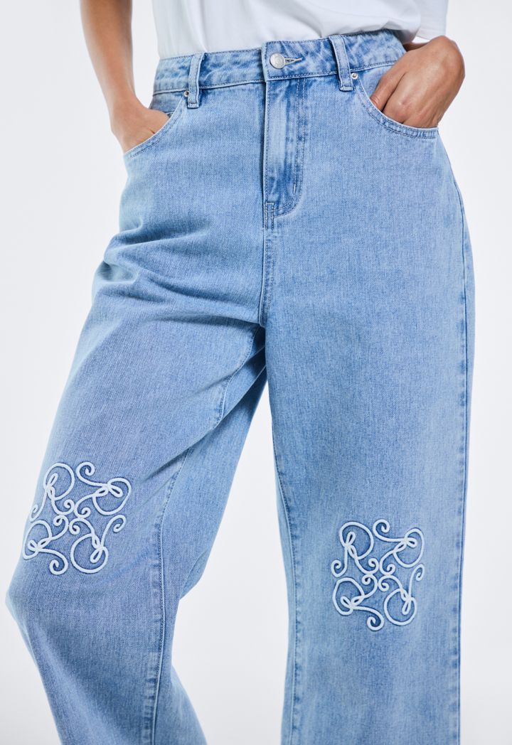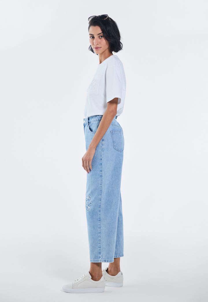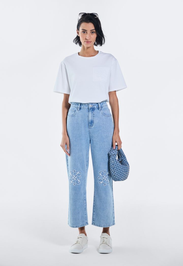 Embroidered Monogram Straight Cut Jeans |