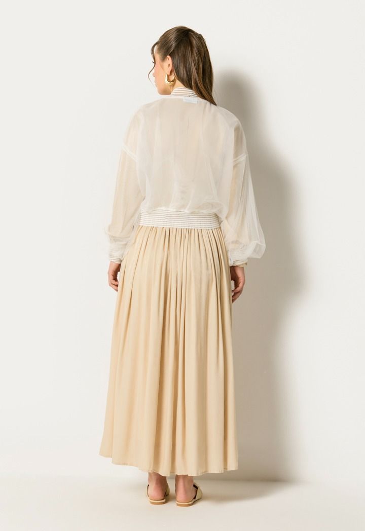 Design : Solid, Embroidered, Organza, Elastic Hem, Attached Lining