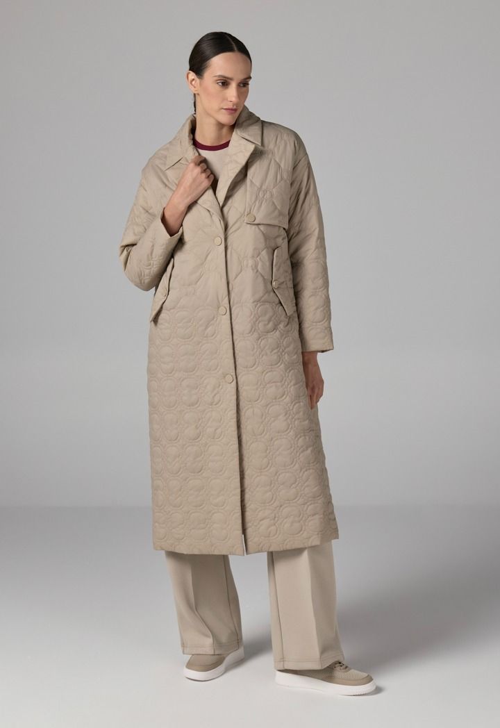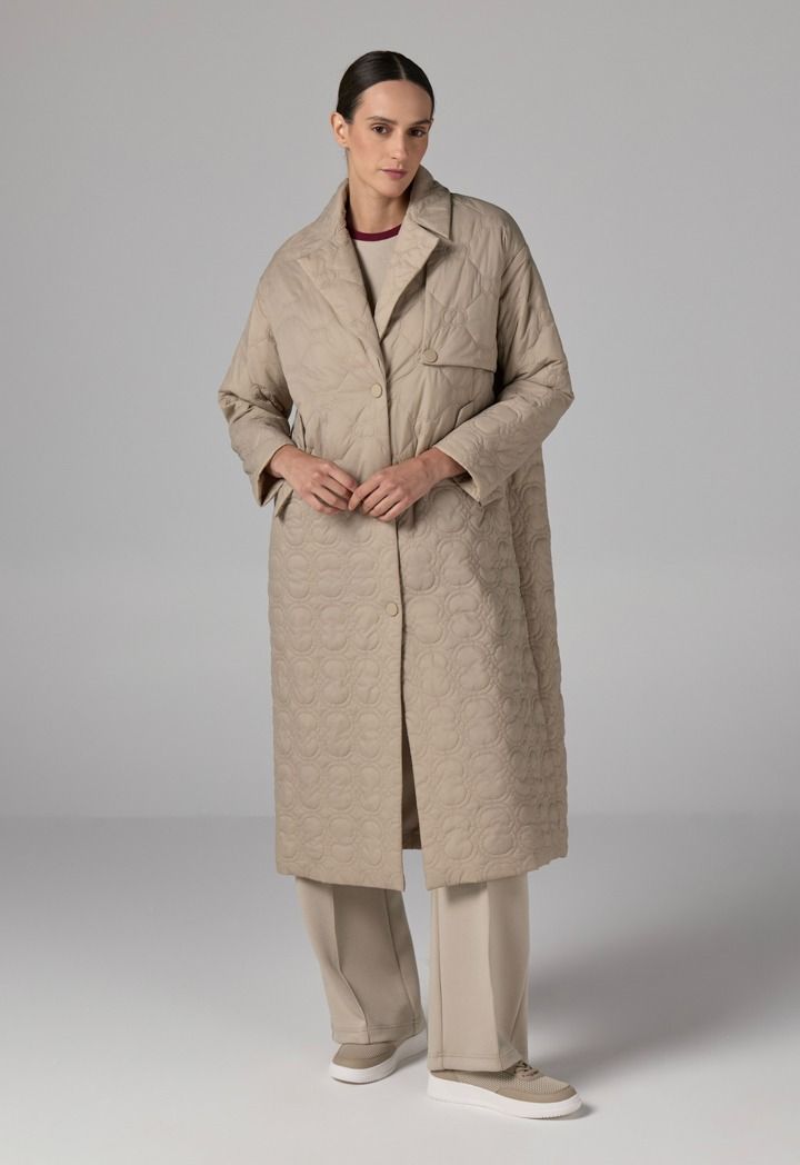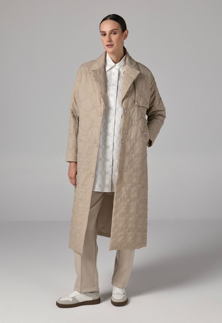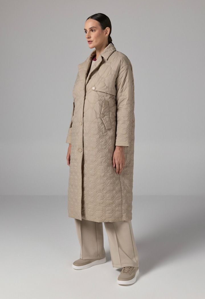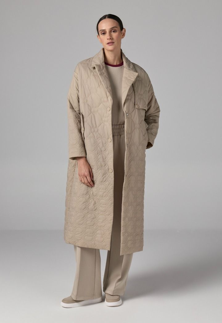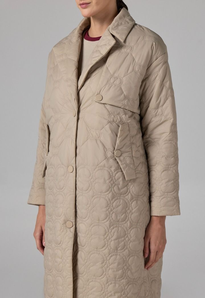 Design: Solid, Pockets, Quilted, Attached Lining, Flared, Overlay, Embroidered Monogram