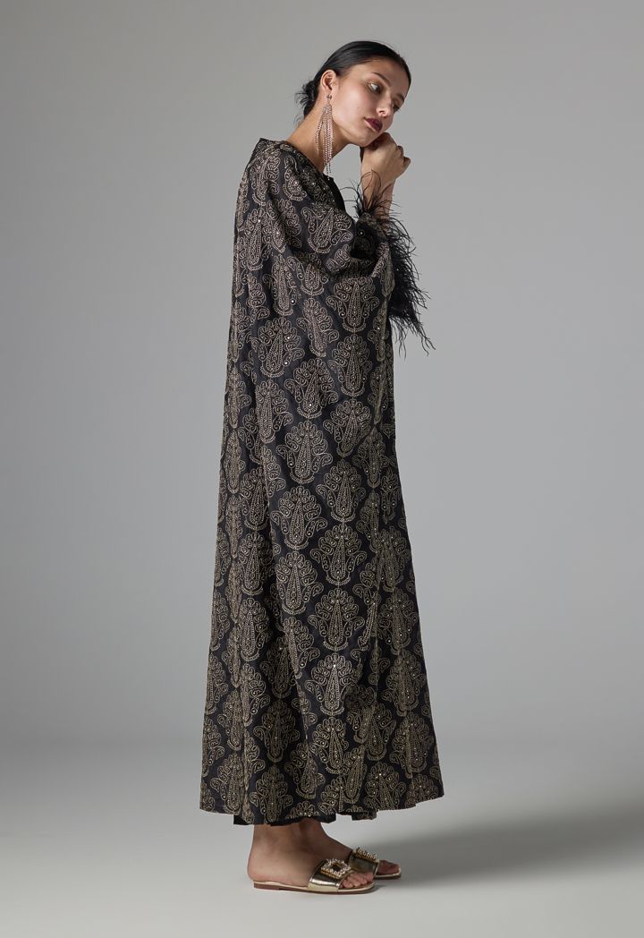 Embroidered Sequins Fringe Maxi Abaya |