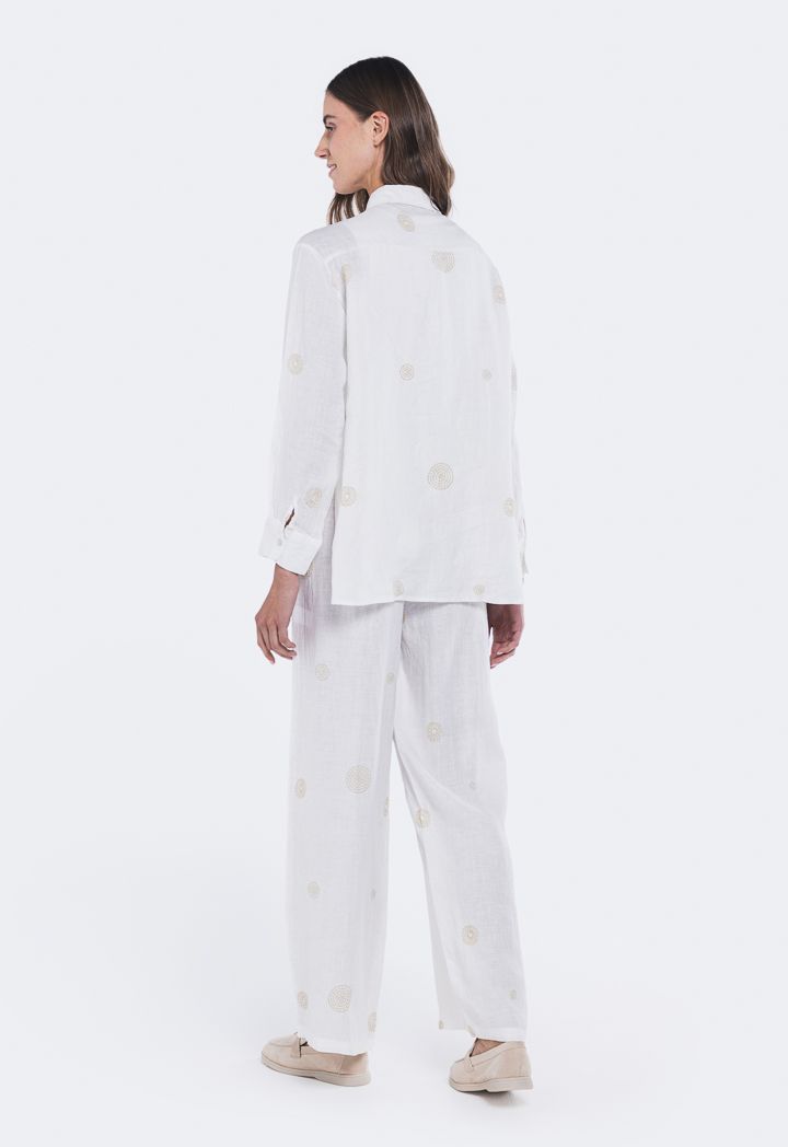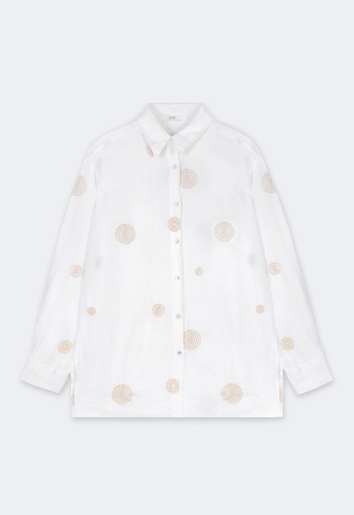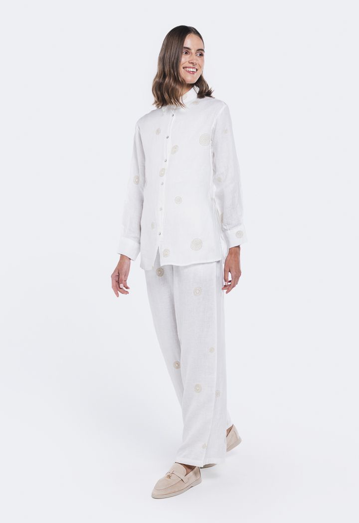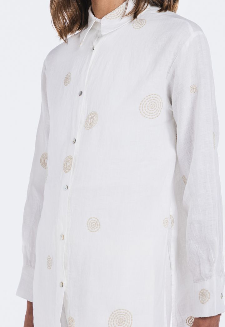 Embroidered Side Slit Linen Shirt |