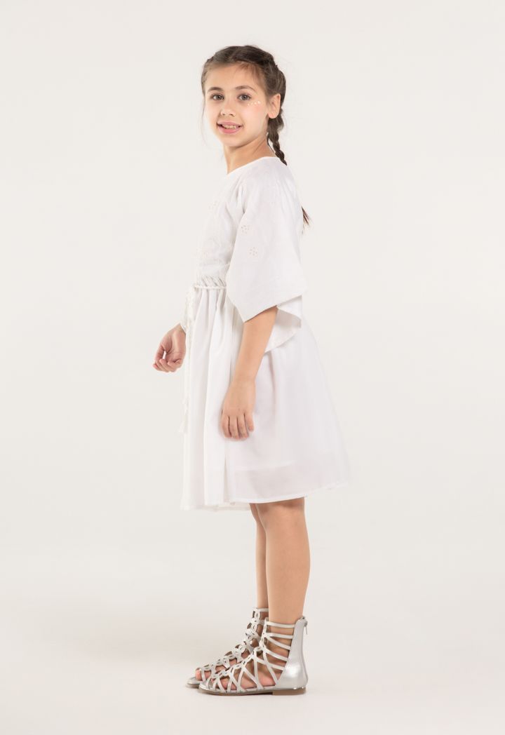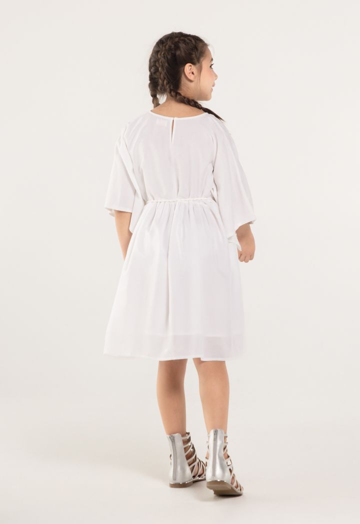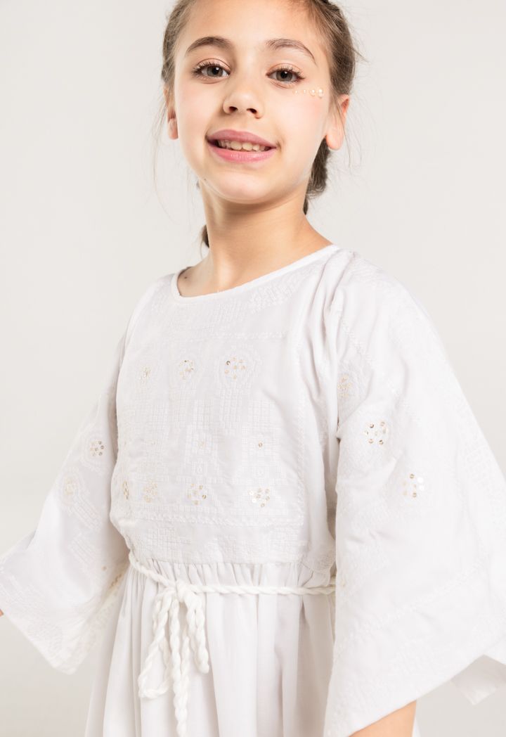 Equip your girl's closet with this Dress. It features a Round Neckline, Slit Sleeves with Embroidered details.