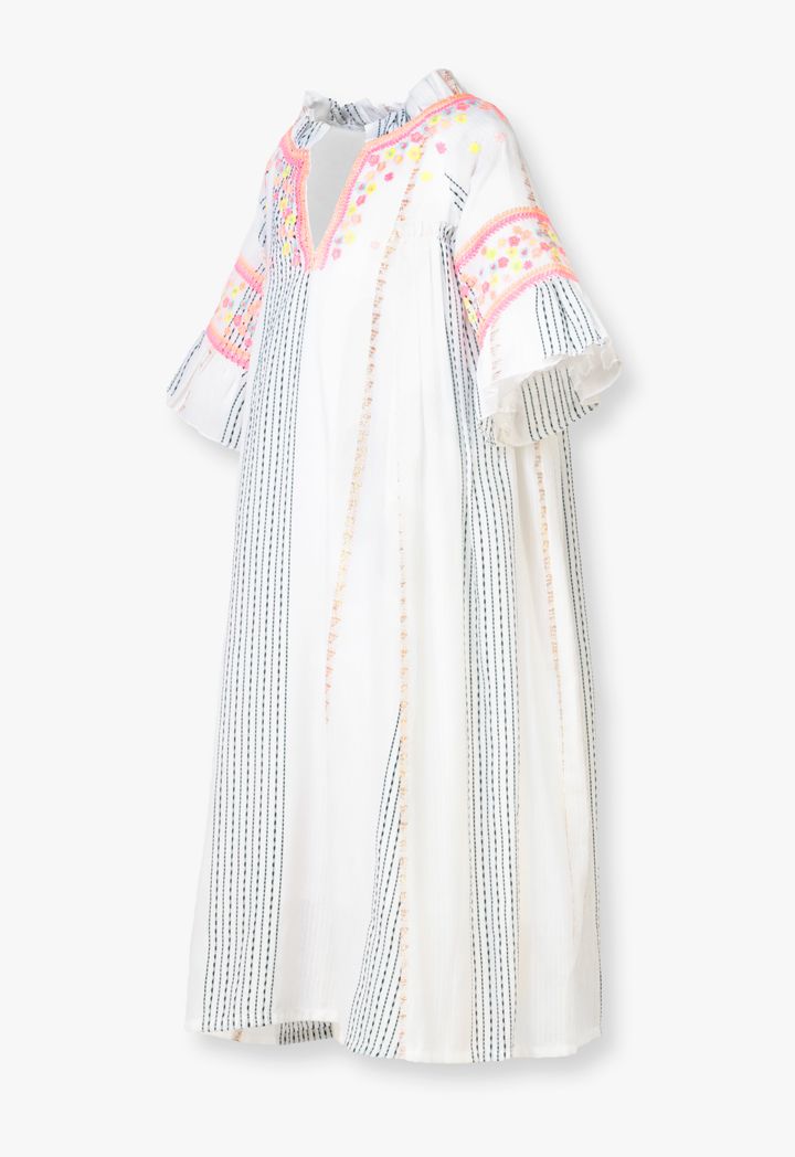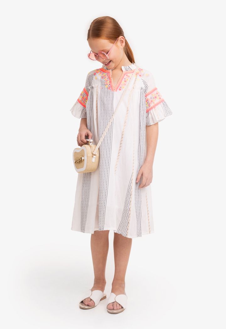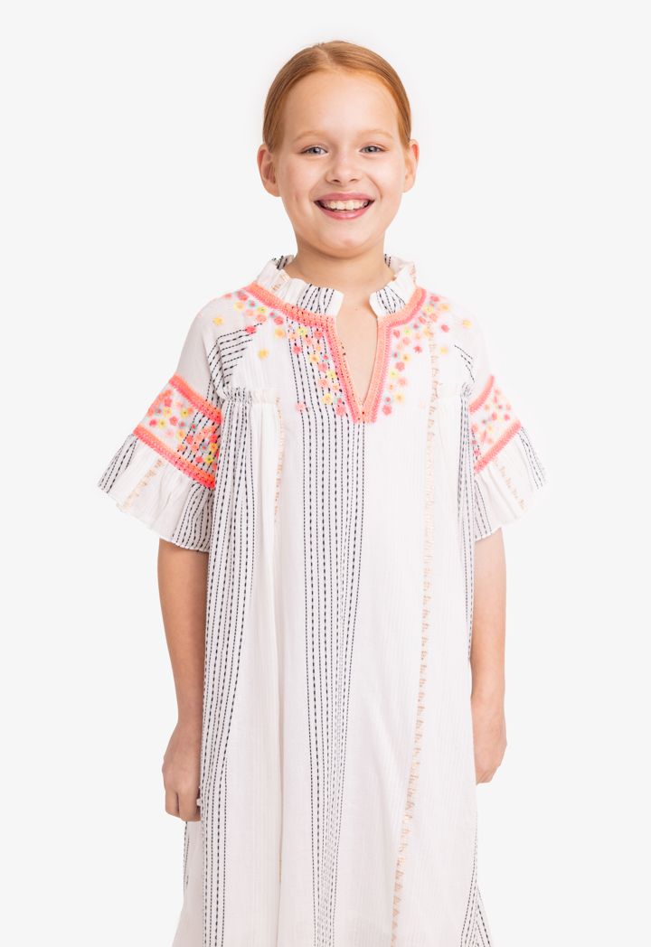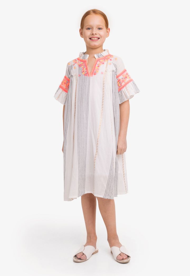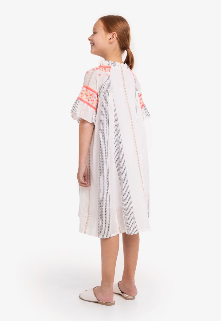 Ensure that your little girl looks attractive with this Dress. The embroidered and striped details will enchance her look.