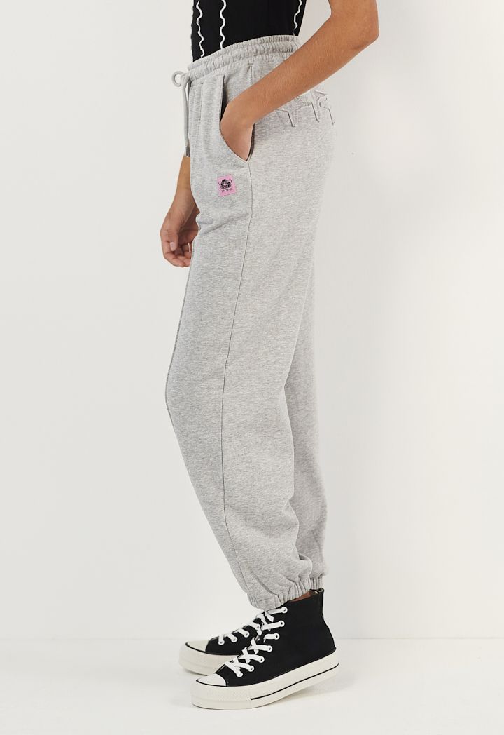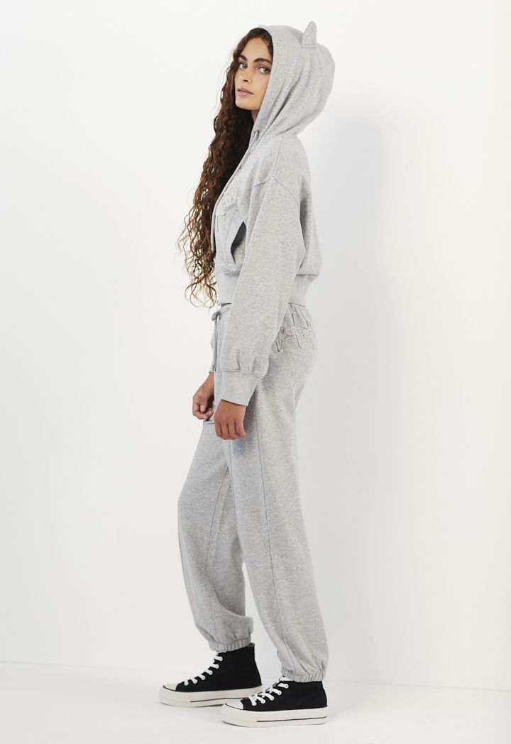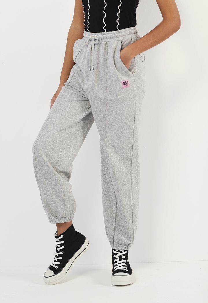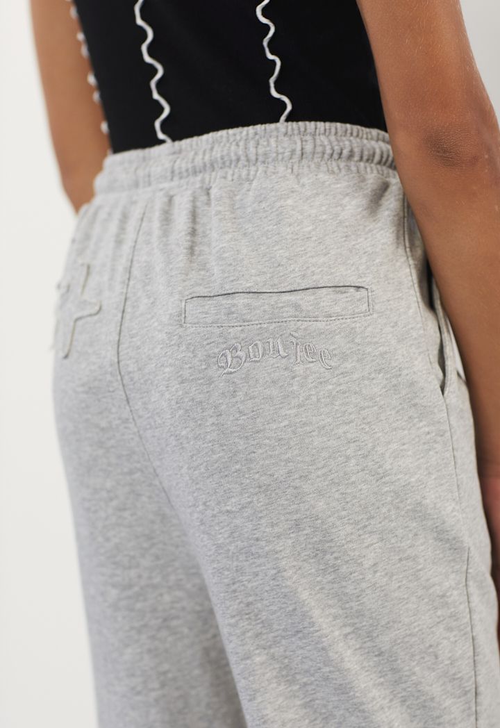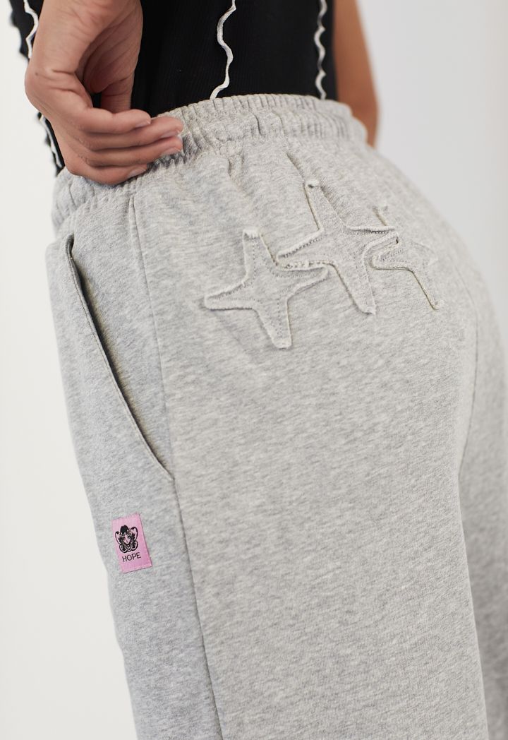 A pair of soft and comfortable sweatpants, embellished with embroidered touches and gathered hems.