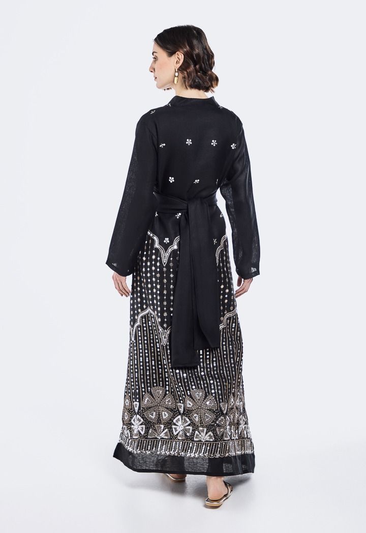 Shine with elegance in an embroidered abaya, complemented by a chic belt to accentuate your beauty and complete your luxurious look