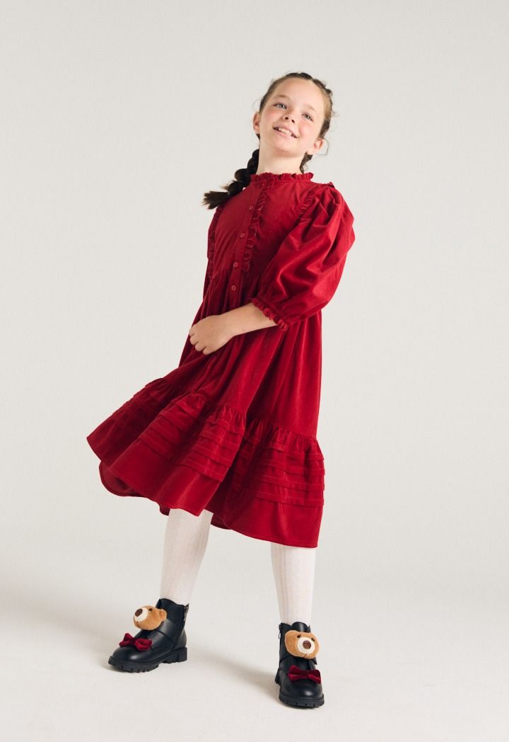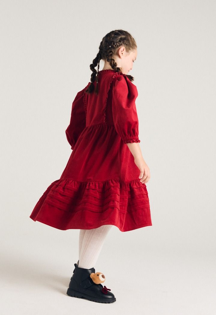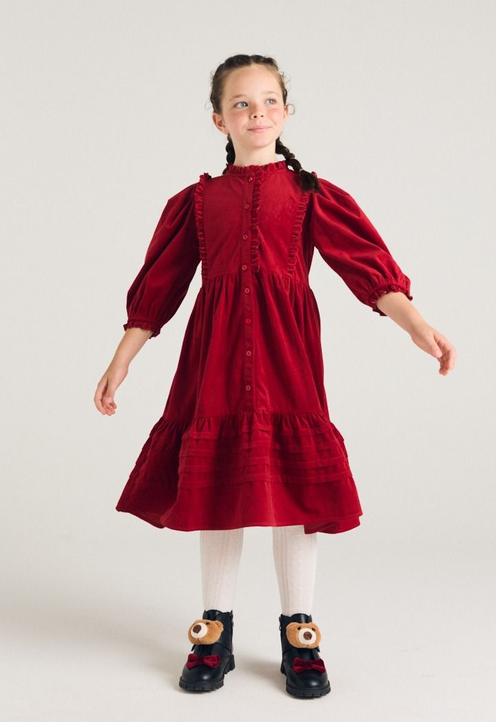 Design : Solid, Velvet, Ruffled, Embroidered, Drop Waist