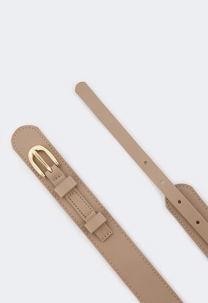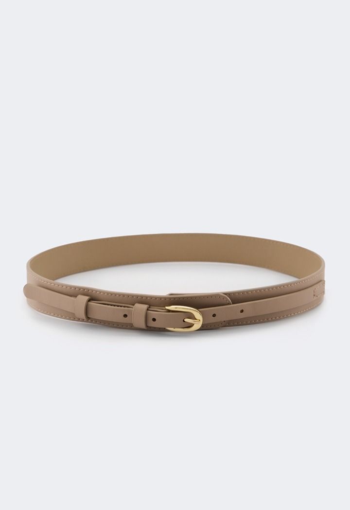 A solid belt that features a PU Leather design and an oval metallic buckle.