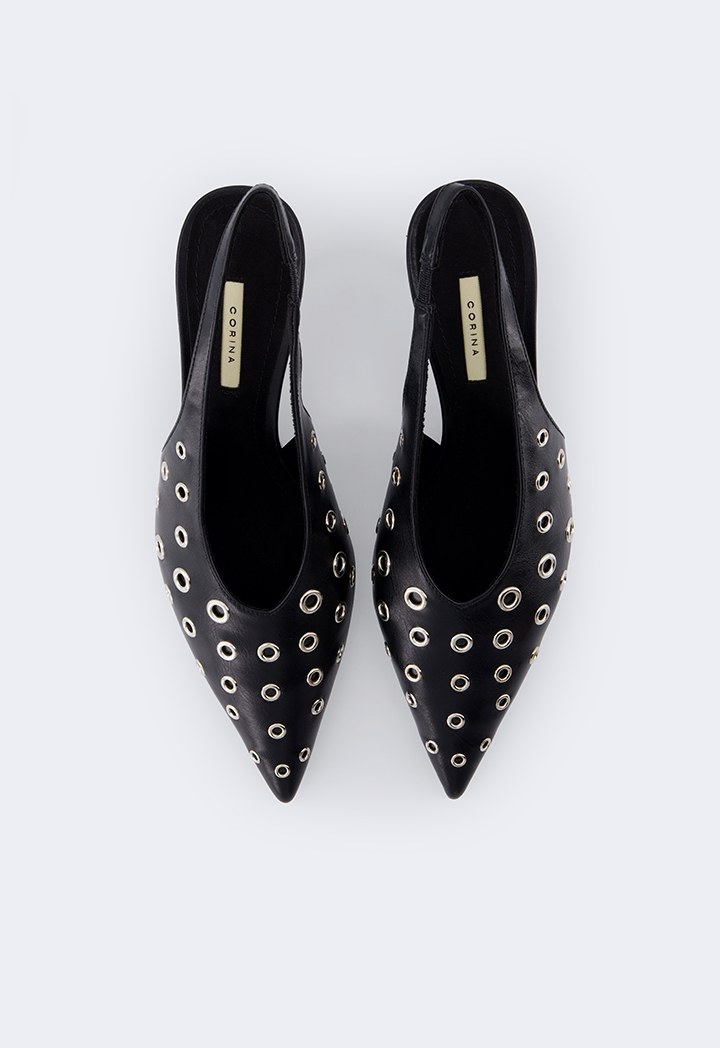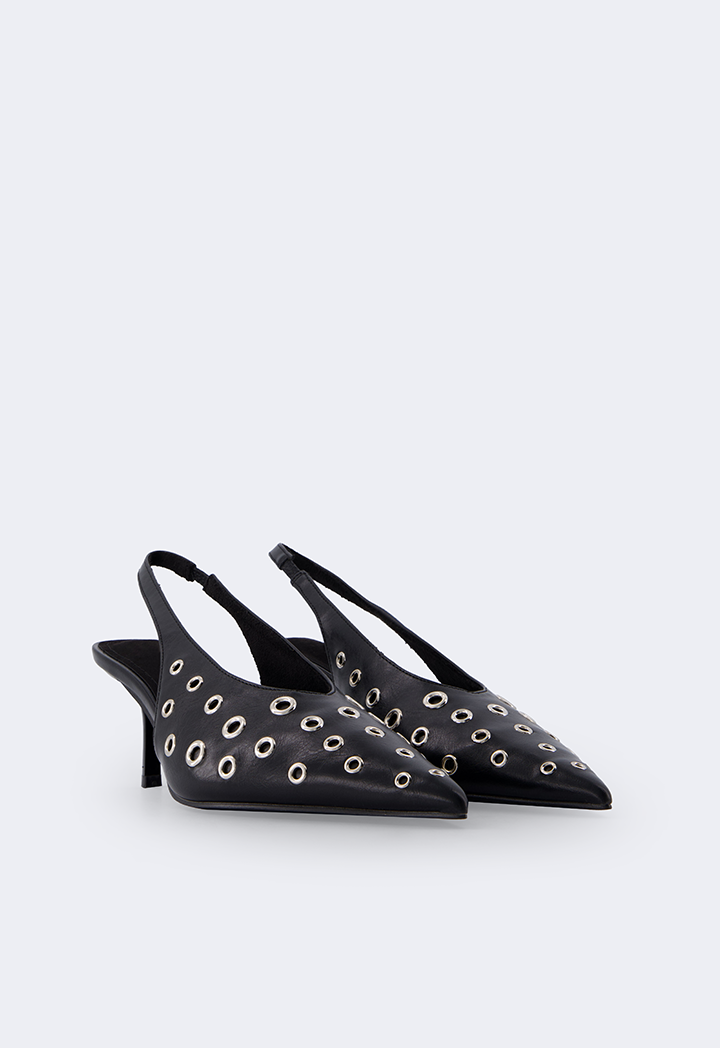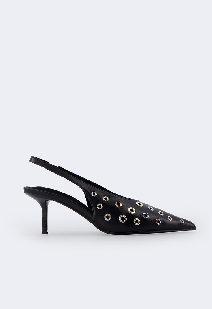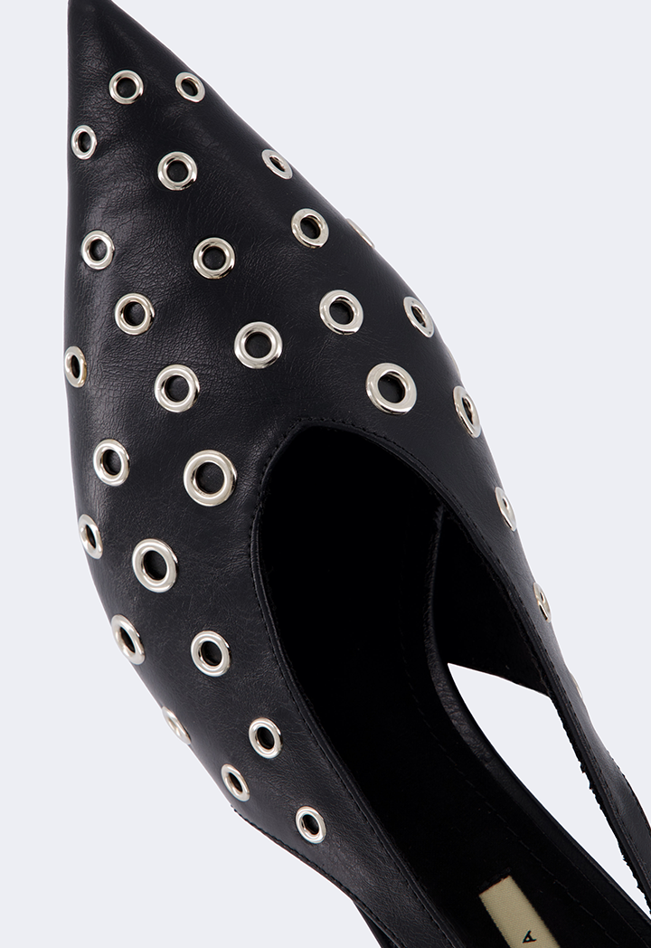 A pair of modern heels that features a Eyelet-Embellished design that is on trend.