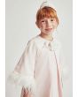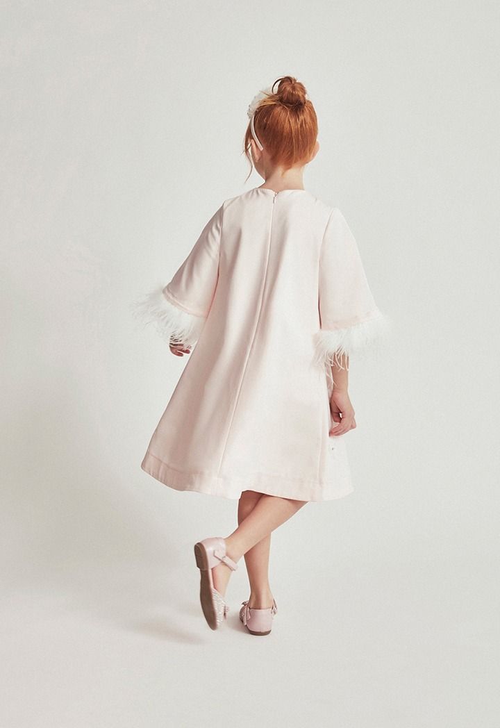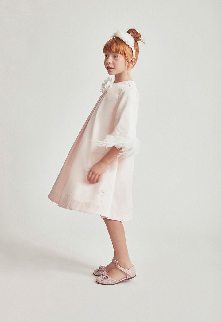 Flowers and faux feather embellished dress that would suit your daughter's skin tone and give her a healthy glow.