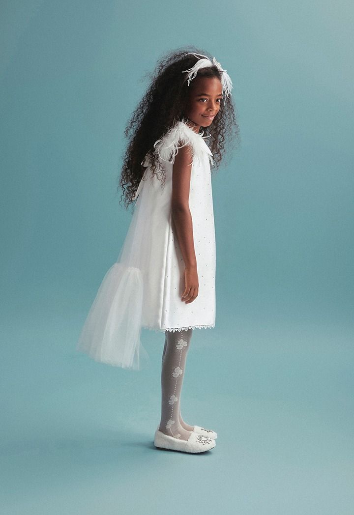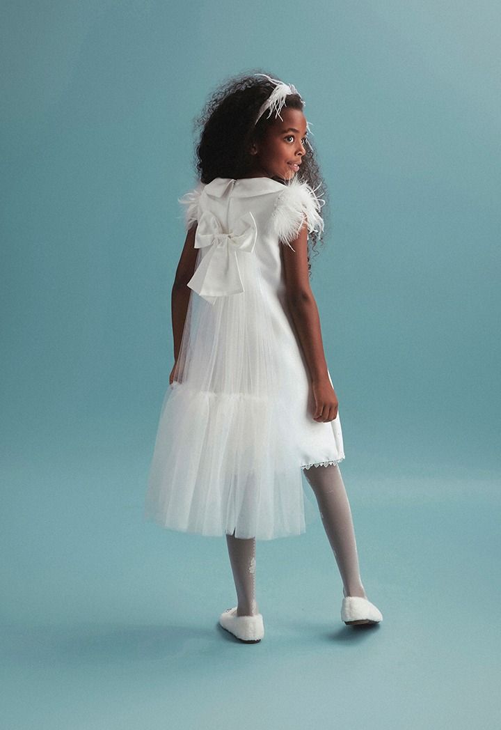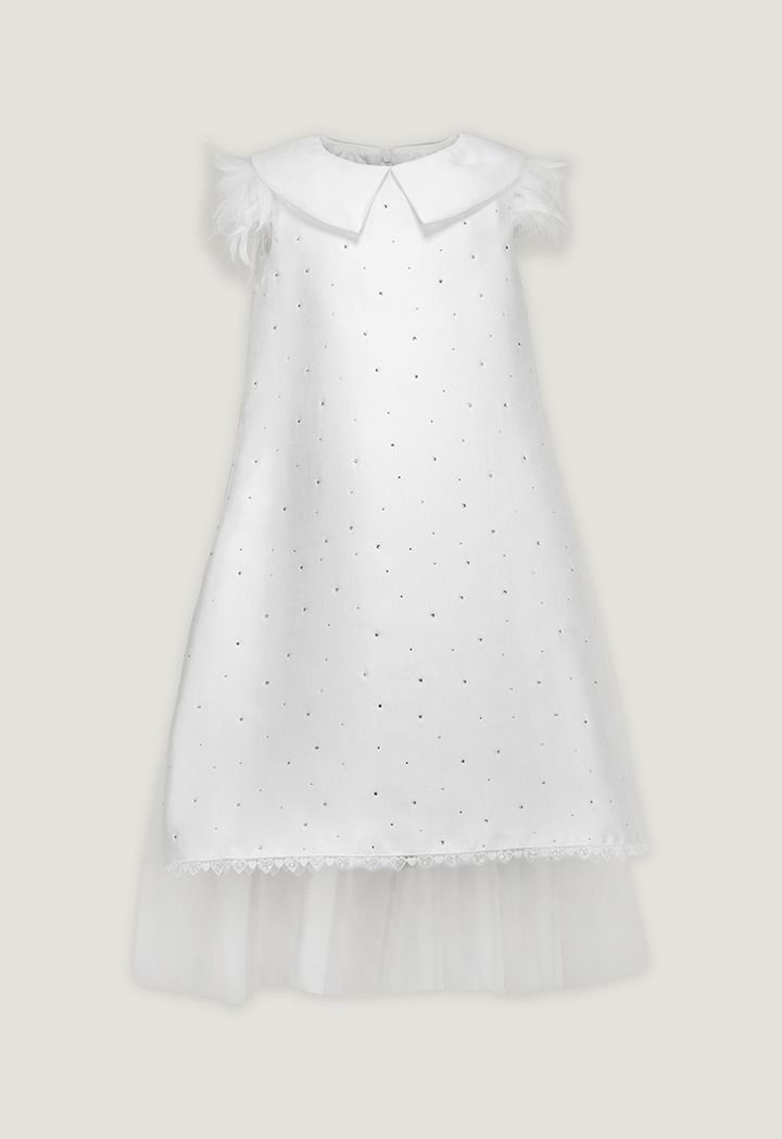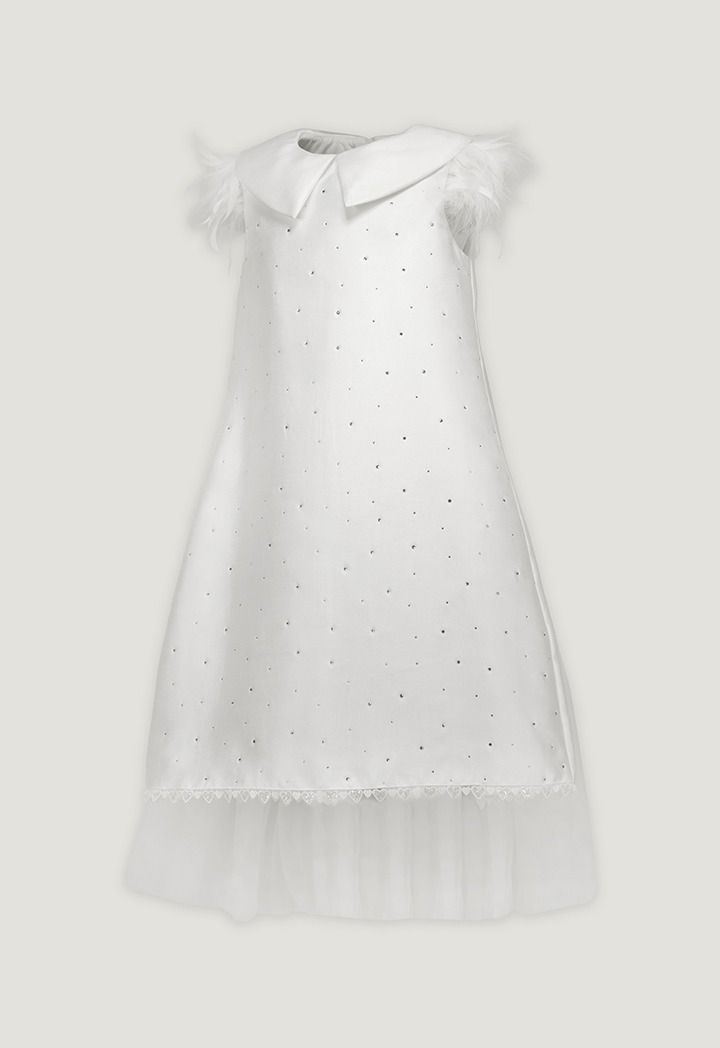 Fashionable Knee Dress. Featuring Peter Pan Collar, with Faux Feather and Crystal details.