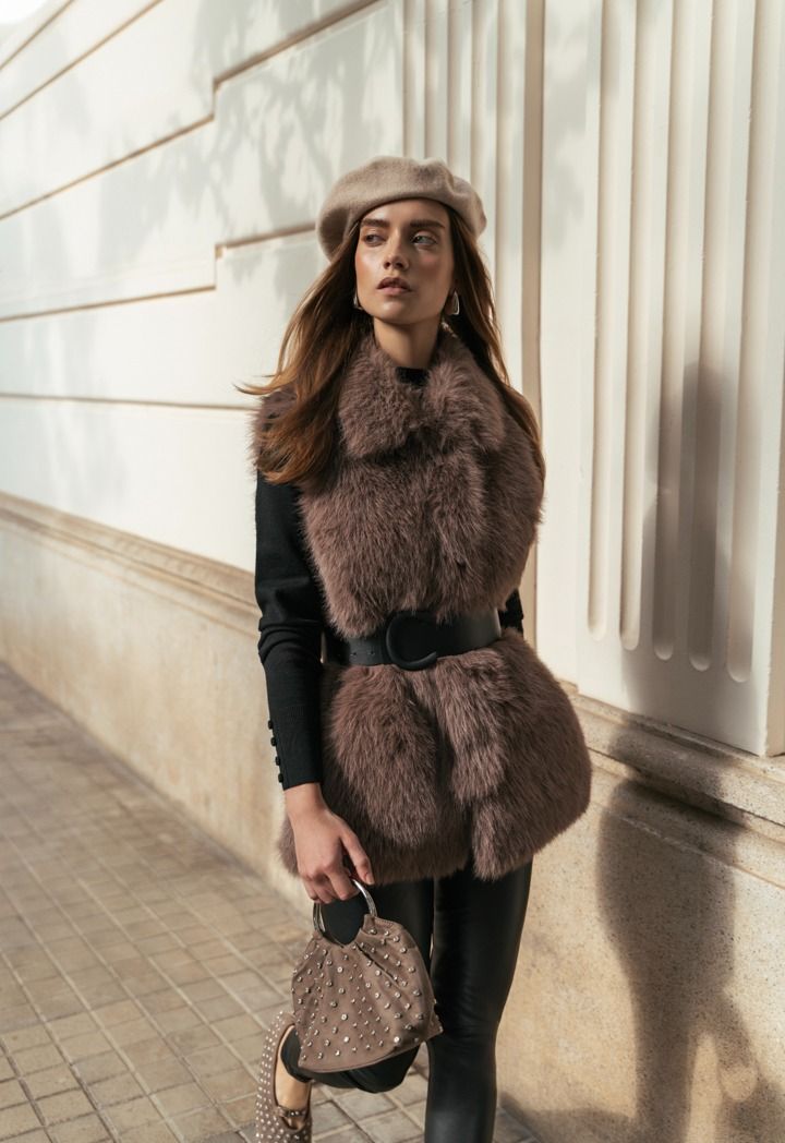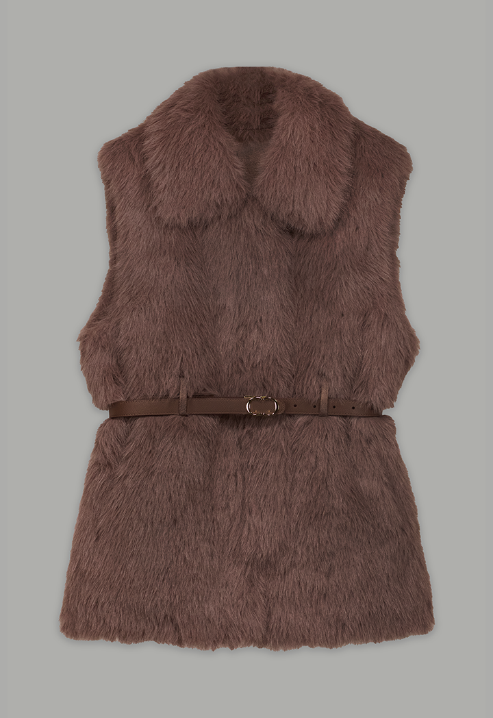 Design: Solid, Faux Fur, Front Pockets, PU Leather Belt