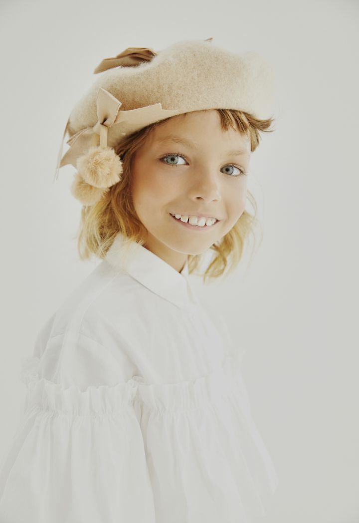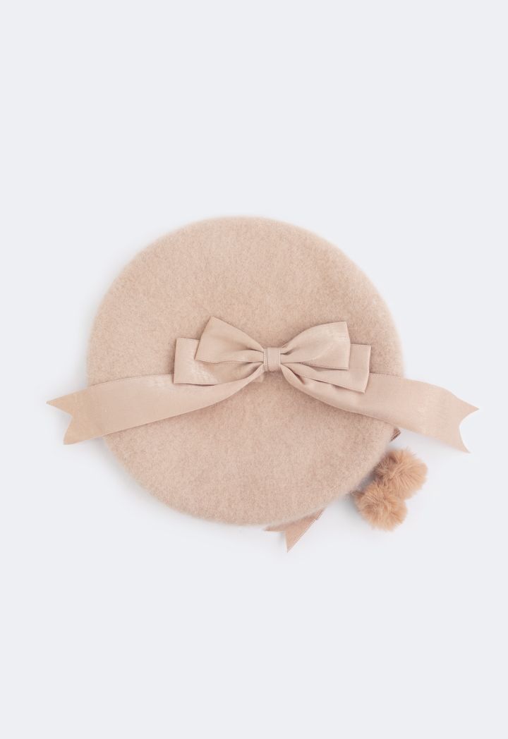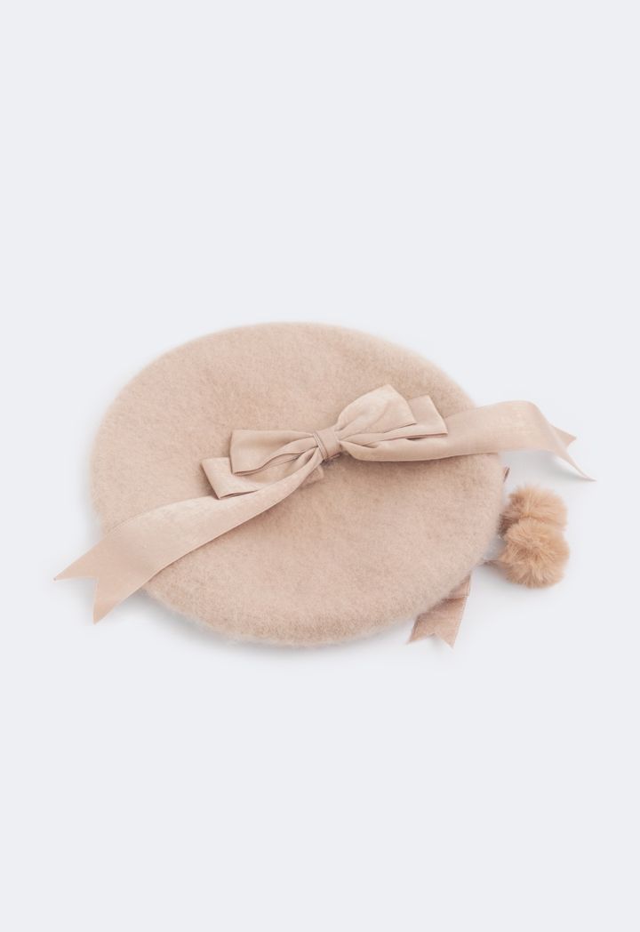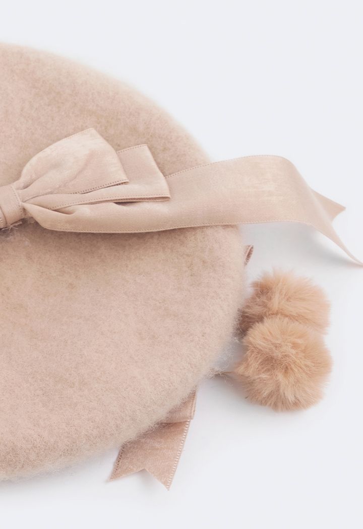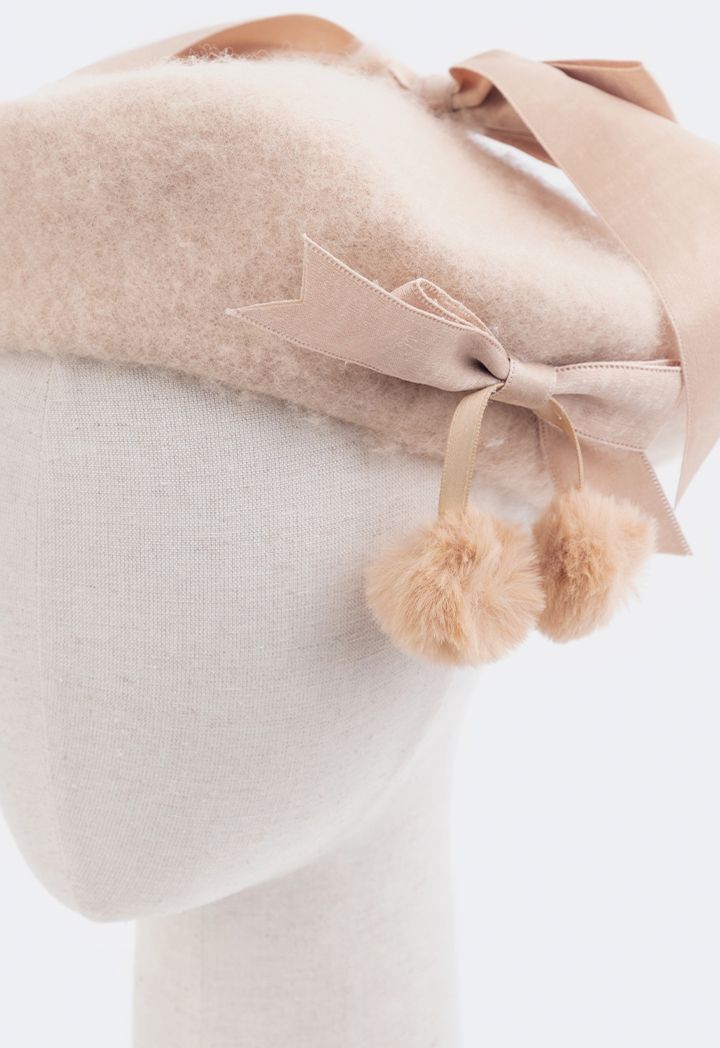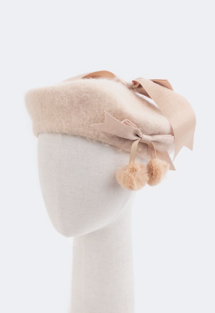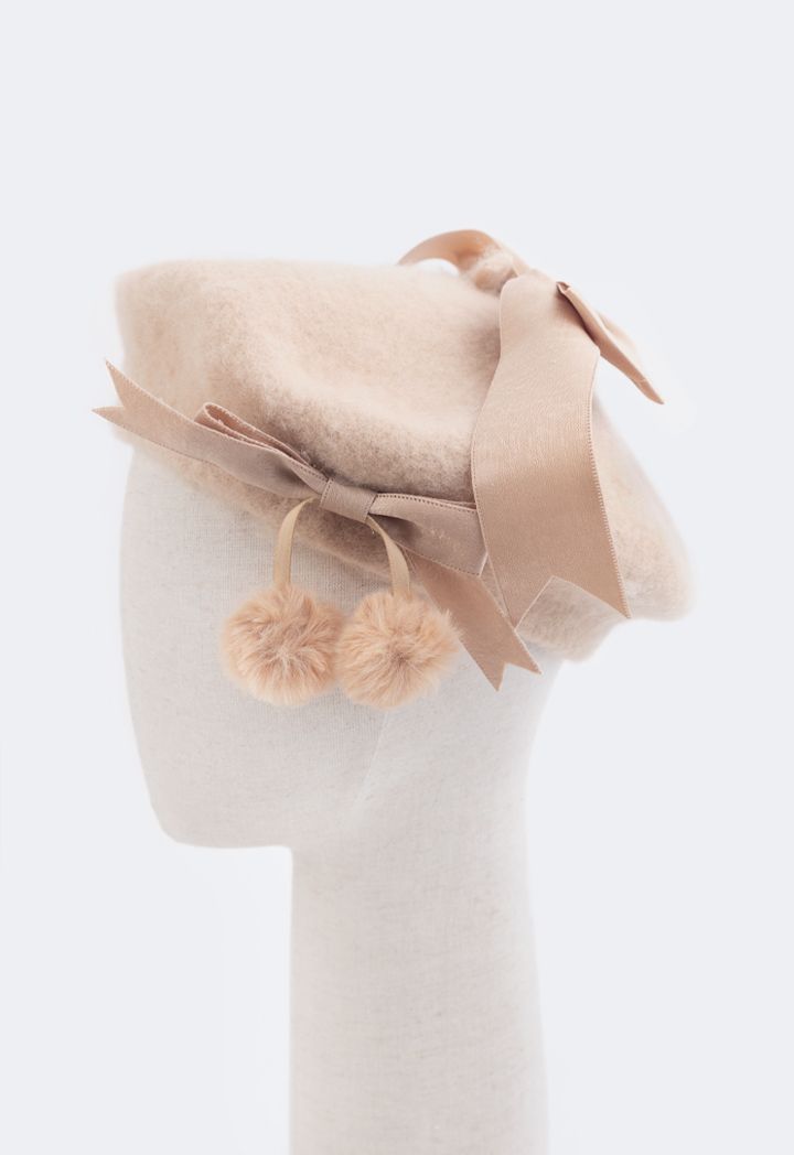 A wool beret hat that features a faux fur embellished design to add to its appeal.