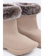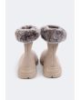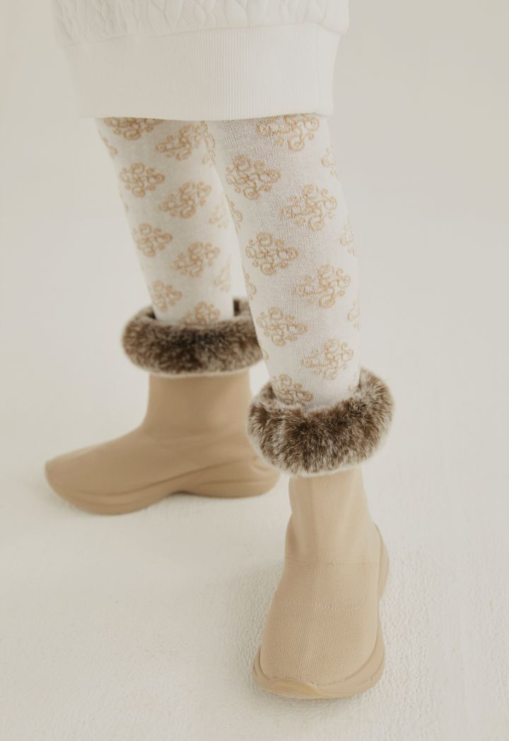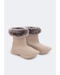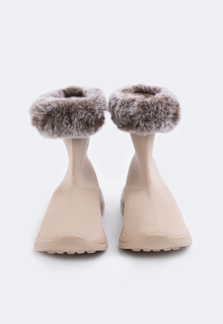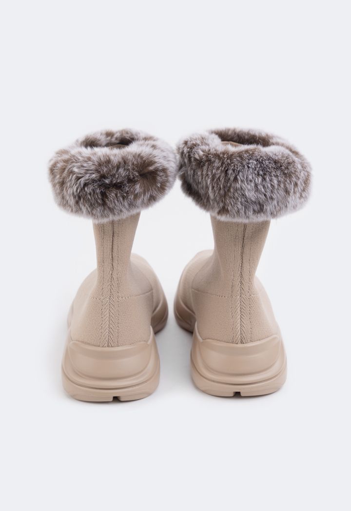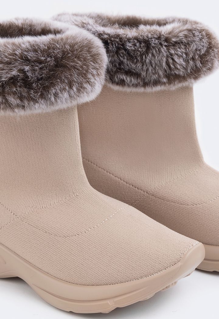 A pair of comfortable knitted boots that feature a fun faux fur embellished design.