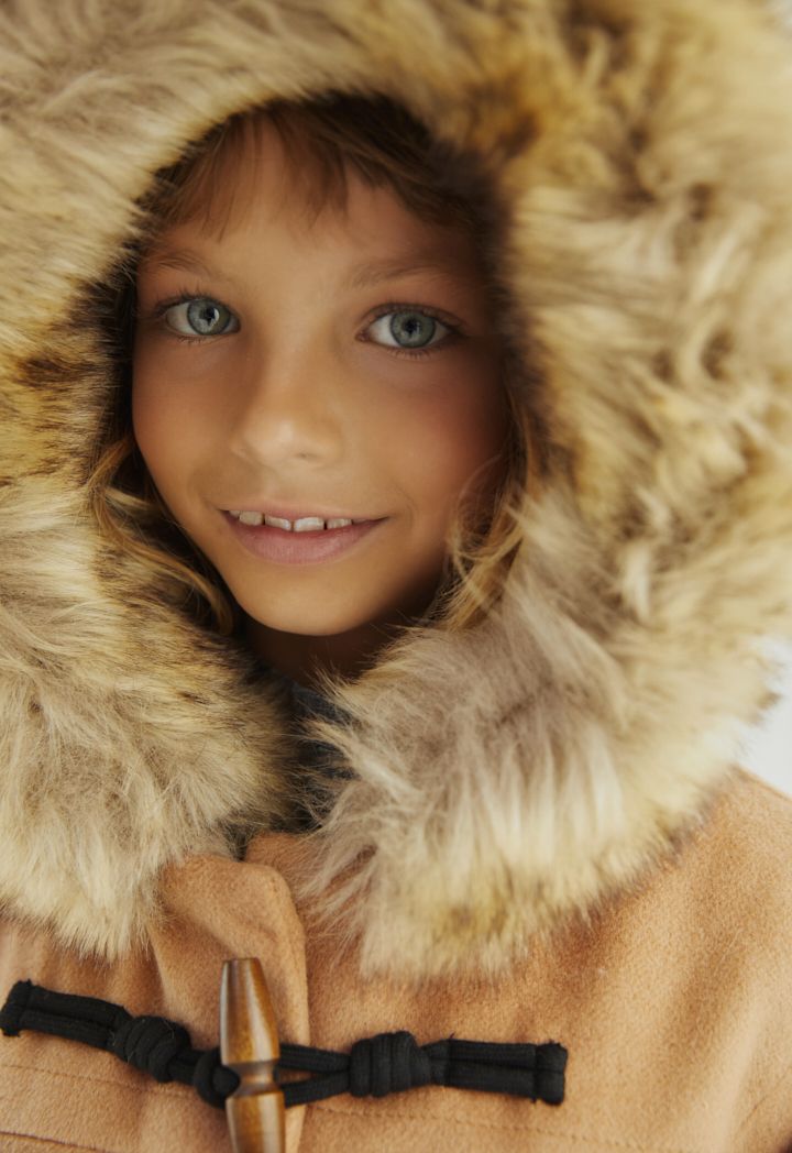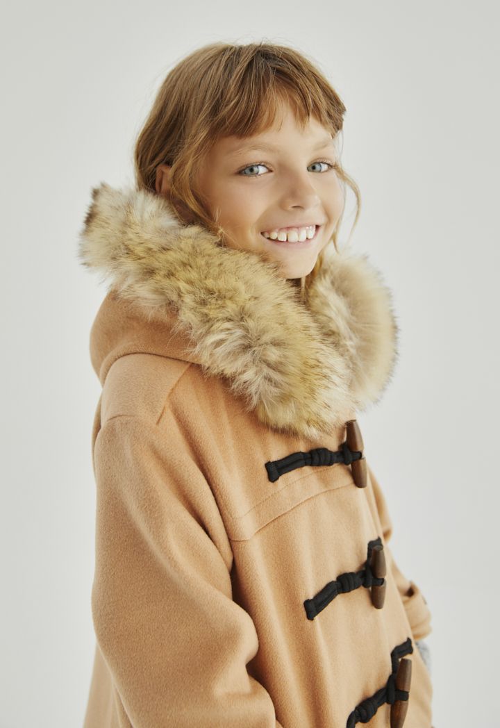A coat that guarantees warmth to your daughter thanks to its faux fur embellished design.