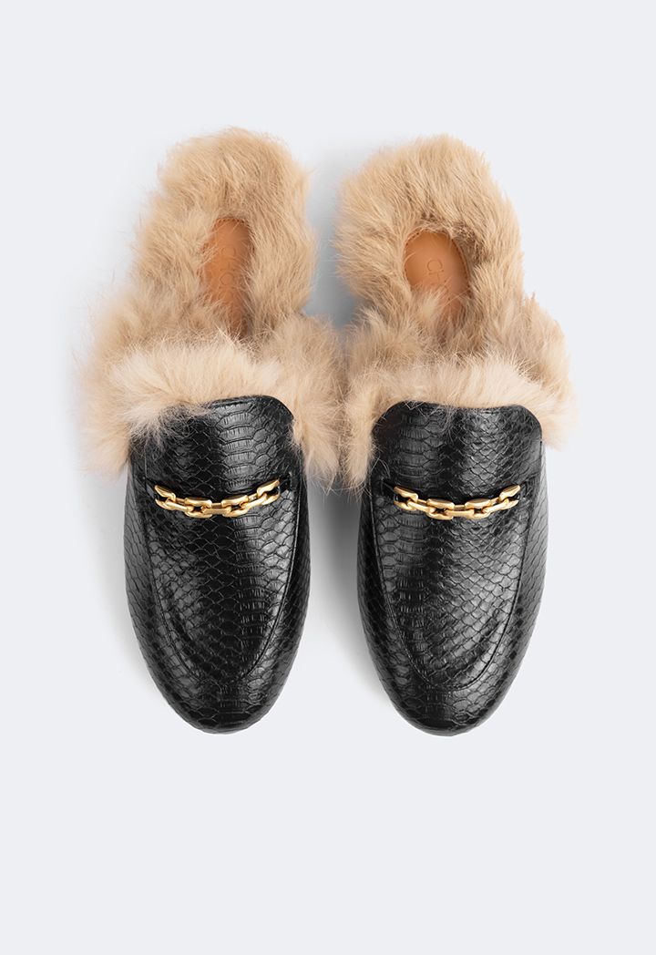A pair of comfortable mules that features faux fur soles to provide you with warmth for your winter looks.
