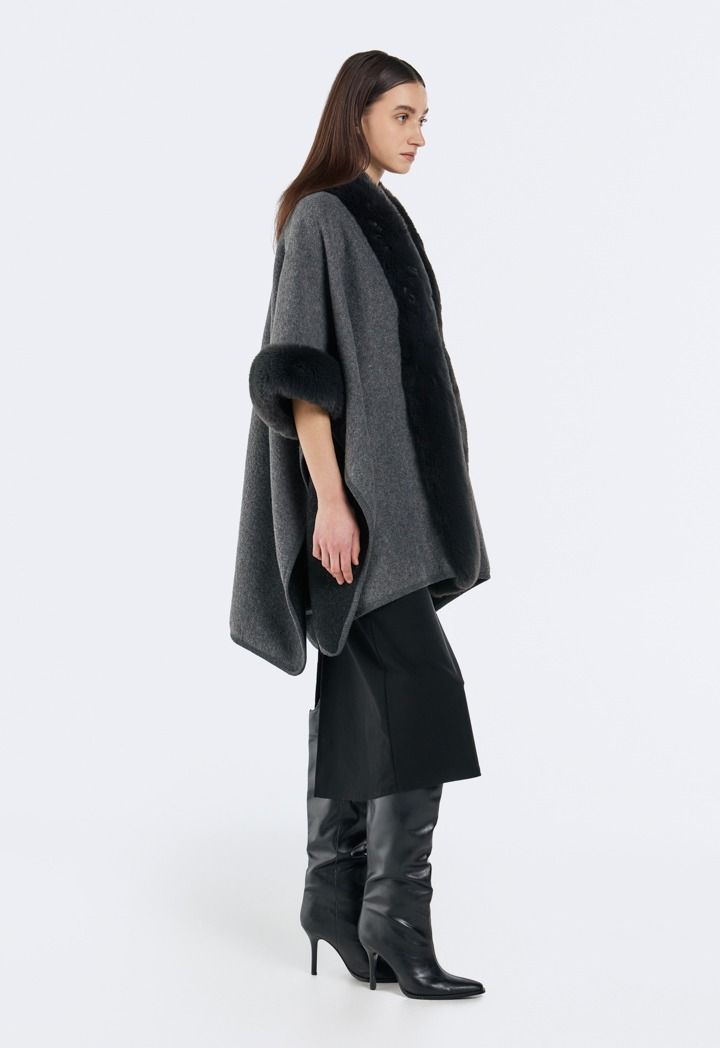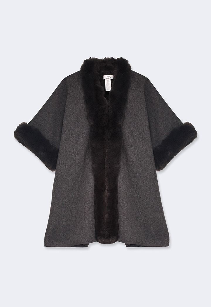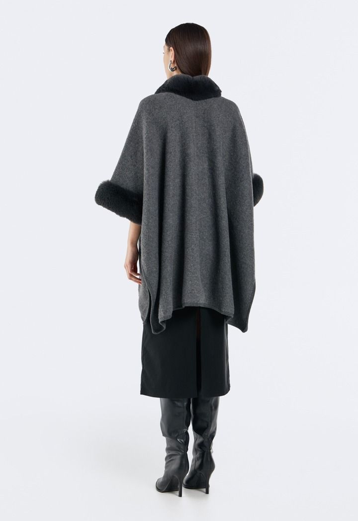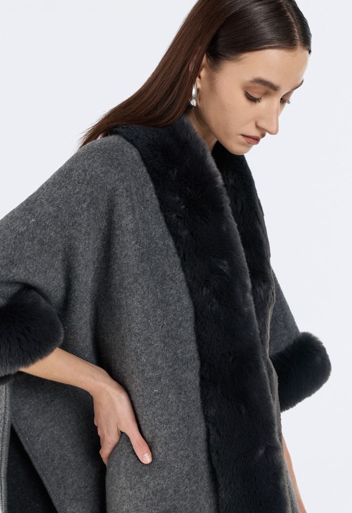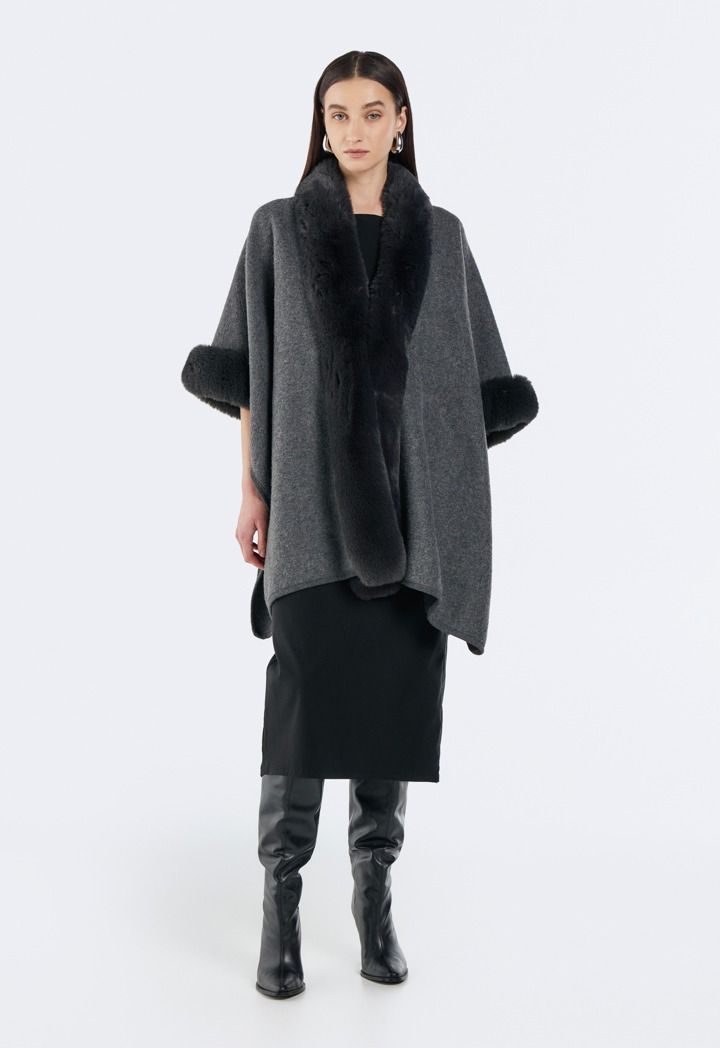 This faux fur embellished poncho is soft, elegant, and perfect for a cozy winter look.